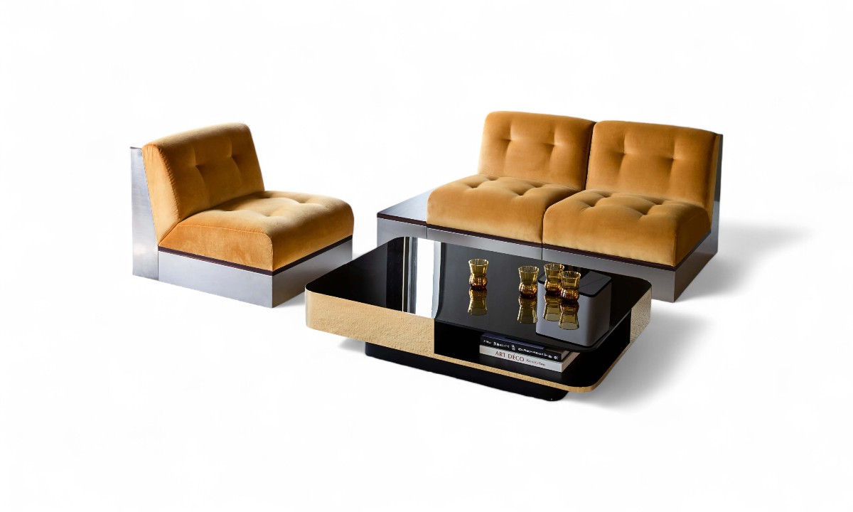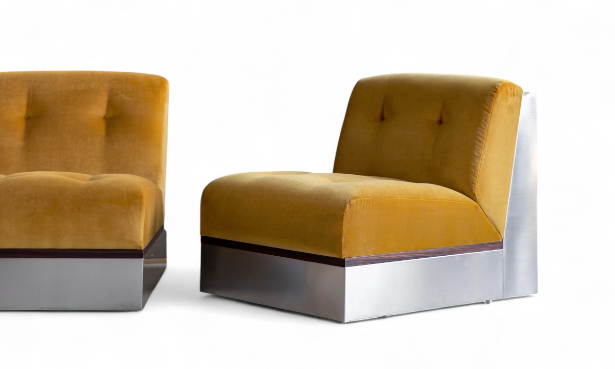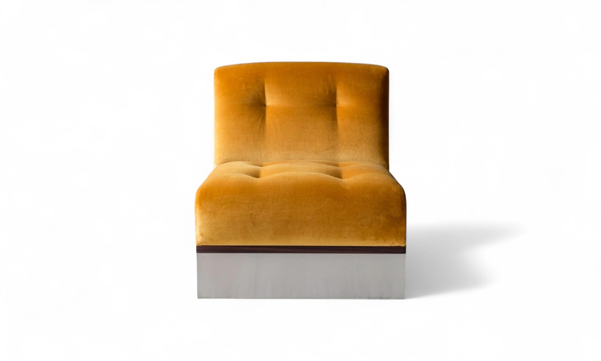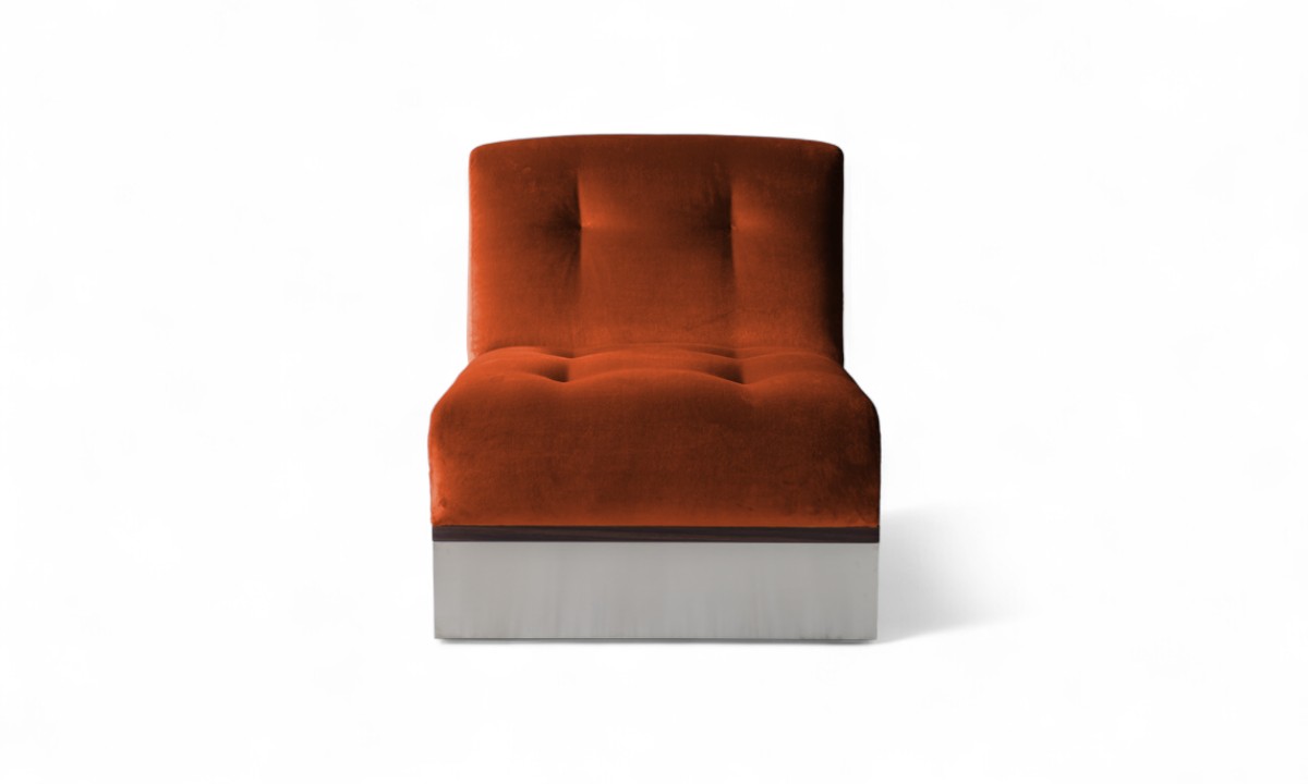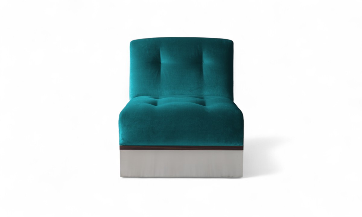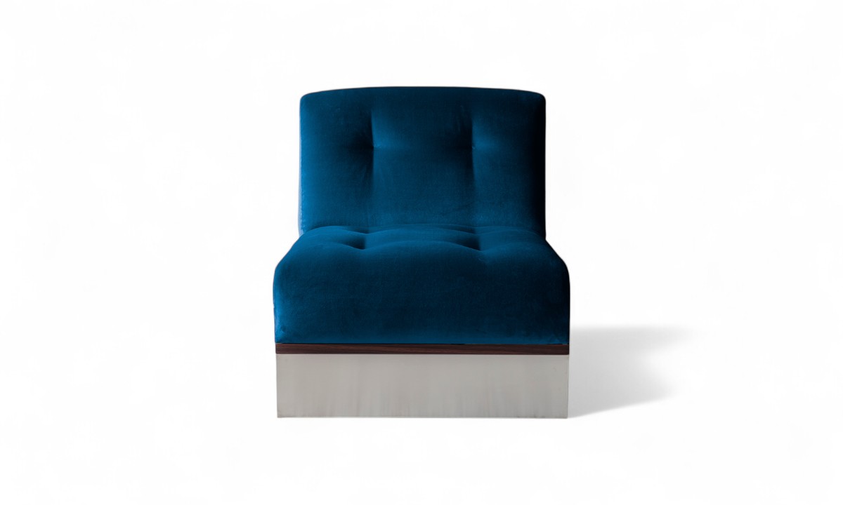The Alto Modular Chair brings sculptural elegance and smart versatility into any contemporary living space. Its armless, low-profile design and deep channel tufting create a plush silhouette that feels both luxurious and modern. Upholstered in rich velvet and supported by a stainless-steel base with wood detailing, this piece stands out on its own or connects seamlessly with others. Whether used as a single chair or part of a larger arrangement, it enhances interiors with bold style and flexibility.