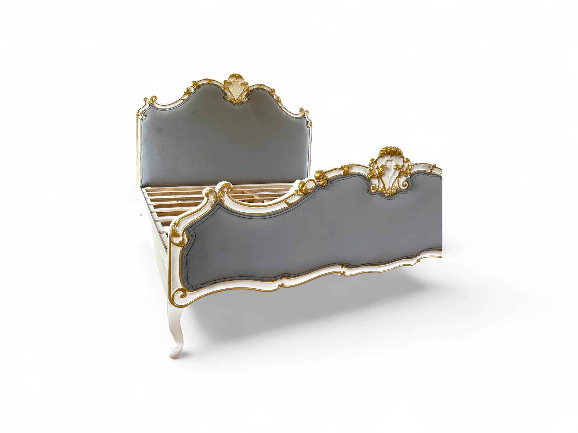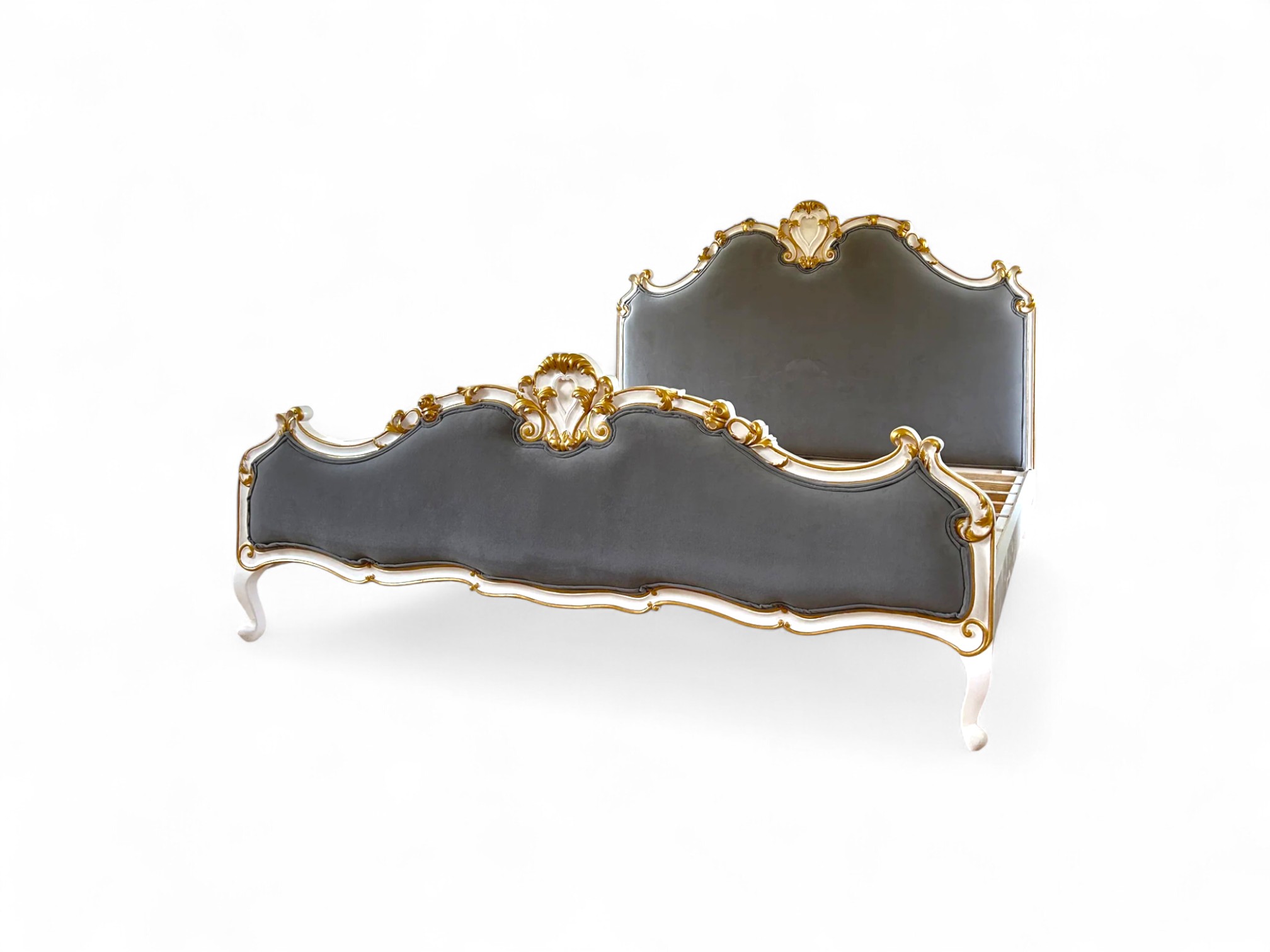 The Amalfi Bed captures the charm of timeless Italian design while embracing modern comfort. With its gracefully curved silhouette, detailed carvings, and refined finish, the bed stands out as a true work of art. The elegant gold highlights combined with soft upholstery create a luxurious statement, making the Amalfi Bed a centrepiece in any bedroom.