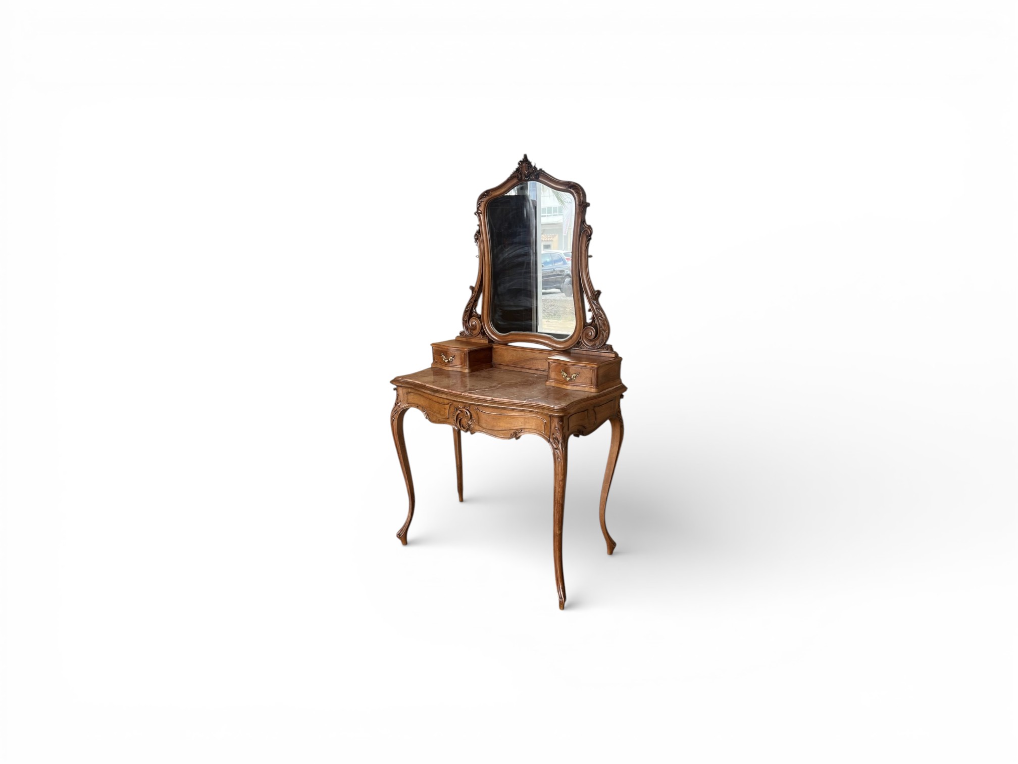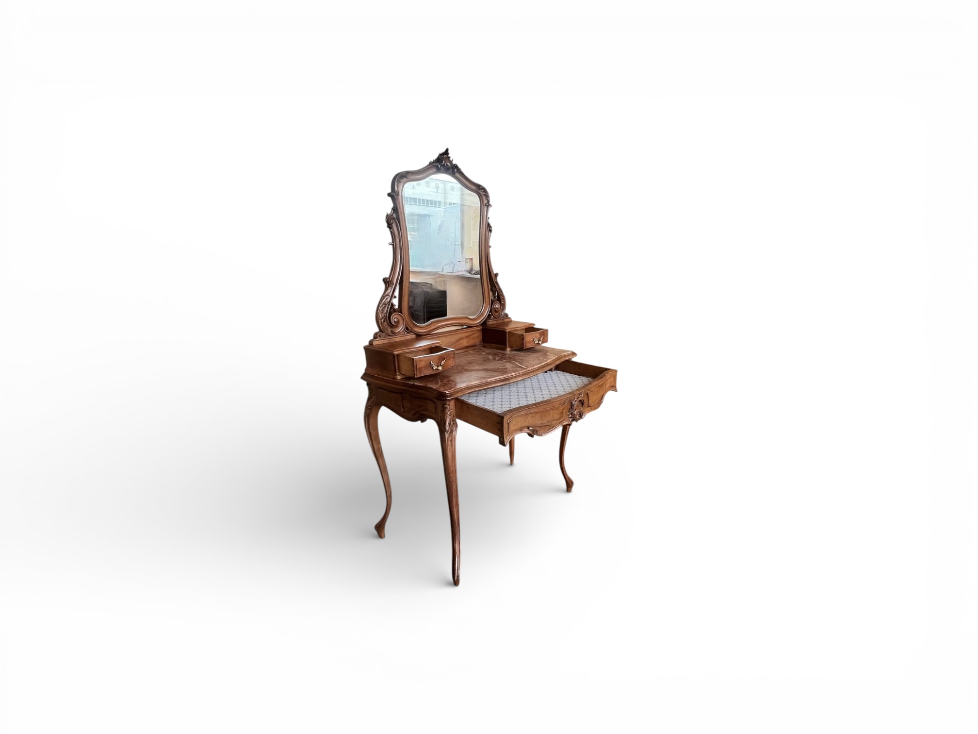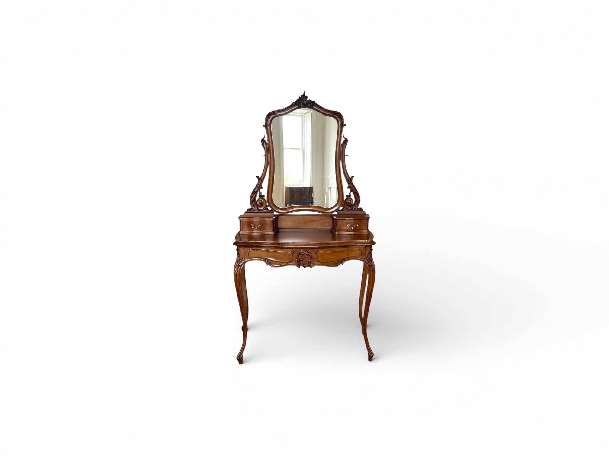 The Anira Dressing Table brings refined elegance to classic interiors through its gracefully carved frame, balanced proportions, and softly arched mirror that creates a poised focal point. Moreover, the warm wooden finish enhances the natural grain, while the sculpted detailing adds depth and character, ensuring the design feels timeless yet inviting.