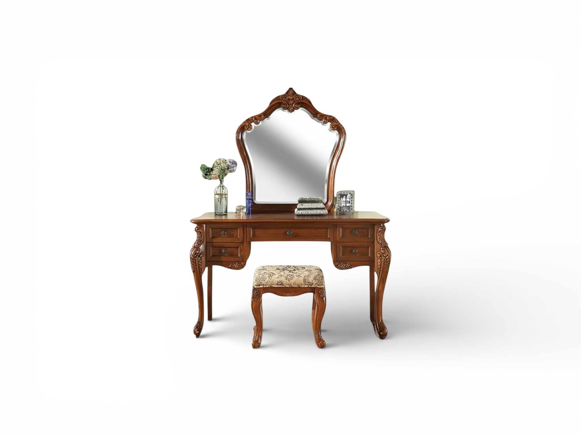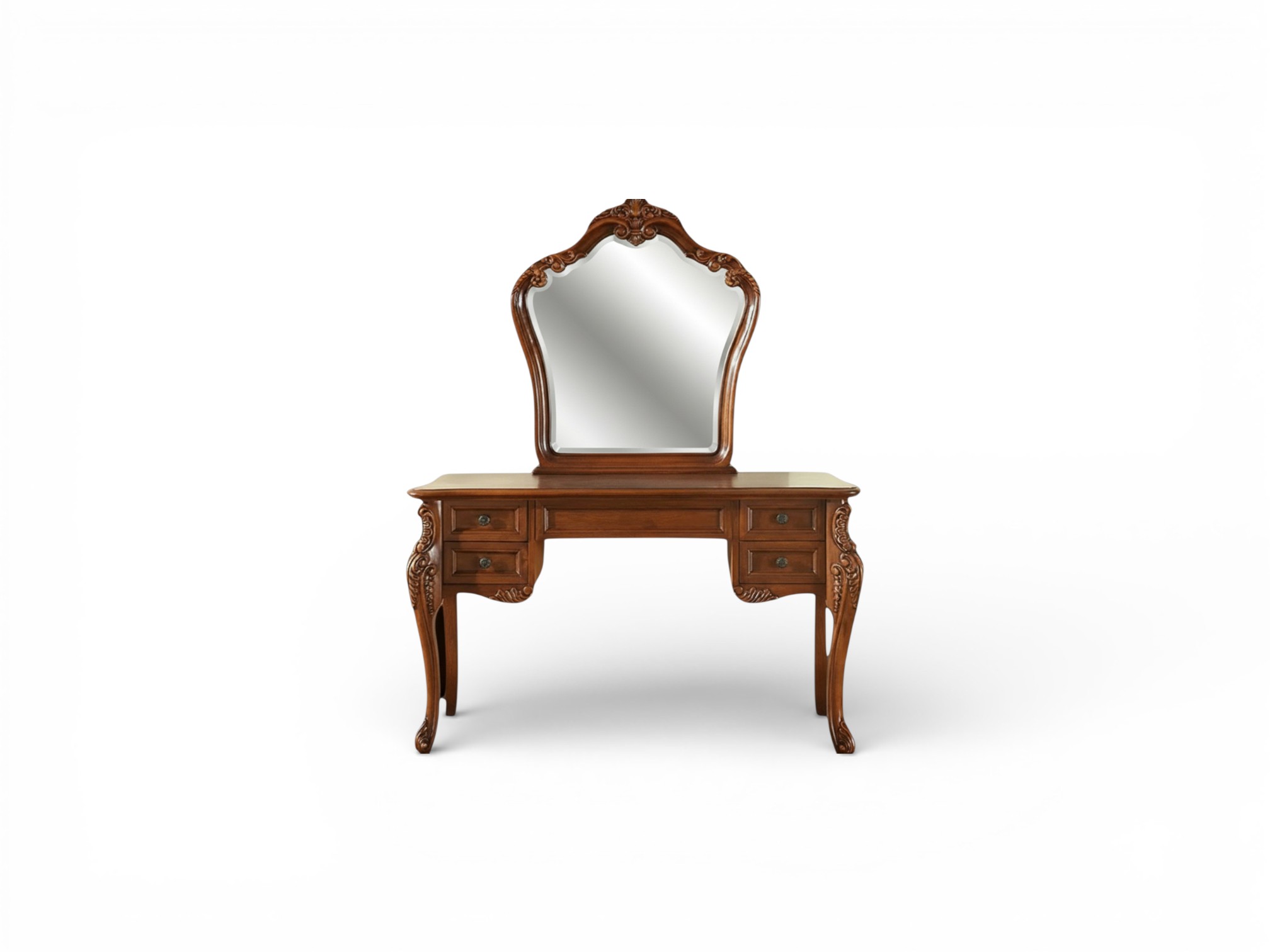 The Ardenwood Classic Dressing Table reflects timeless craftsmanship, bringing warm wooden character and refined elegance into traditional interiors. Its gracefully carved legs, softly contoured edges, and beautifully framed mirror create a balanced silhouette that feels both inviting and distinguished. Moreover, the rich finish enhances the natural grain, allowing the Ardenwood Classic Dressing Table to stand as a sophisticated focal point in bedrooms or dressing spaces.