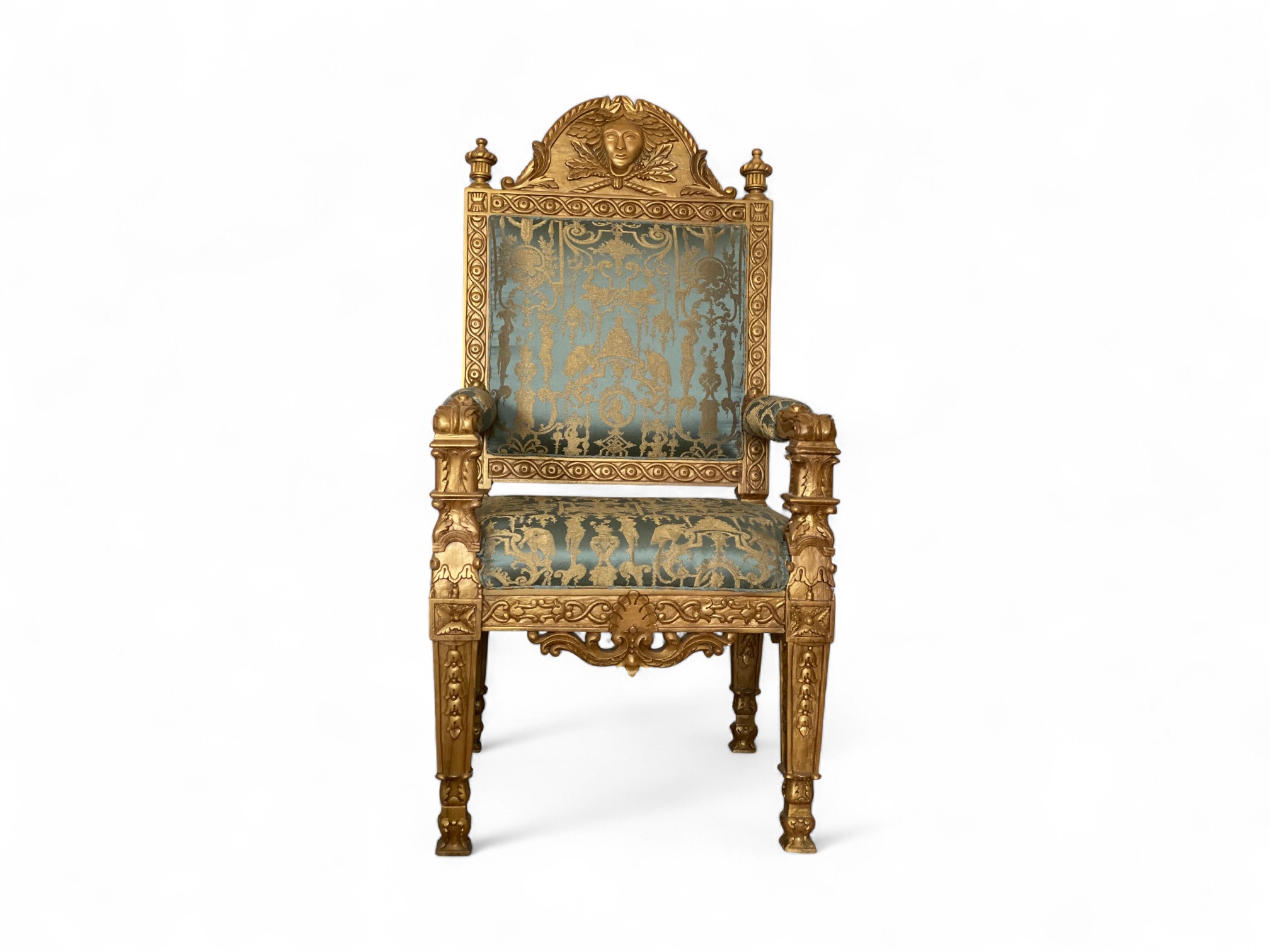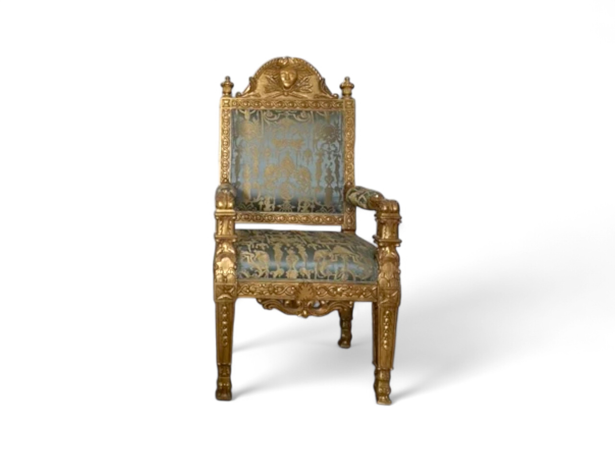 The Baroque Emperor Throne Chair is a true symbol of royal grandeur and timeless artistry. With its hand-carved gold frame and tall, majestic backrest, this chair embodies classical European opulence. Every intricate motif reflects the skill of master craftsmen, creating an aura of sophistication and prestige in any luxurious interior.