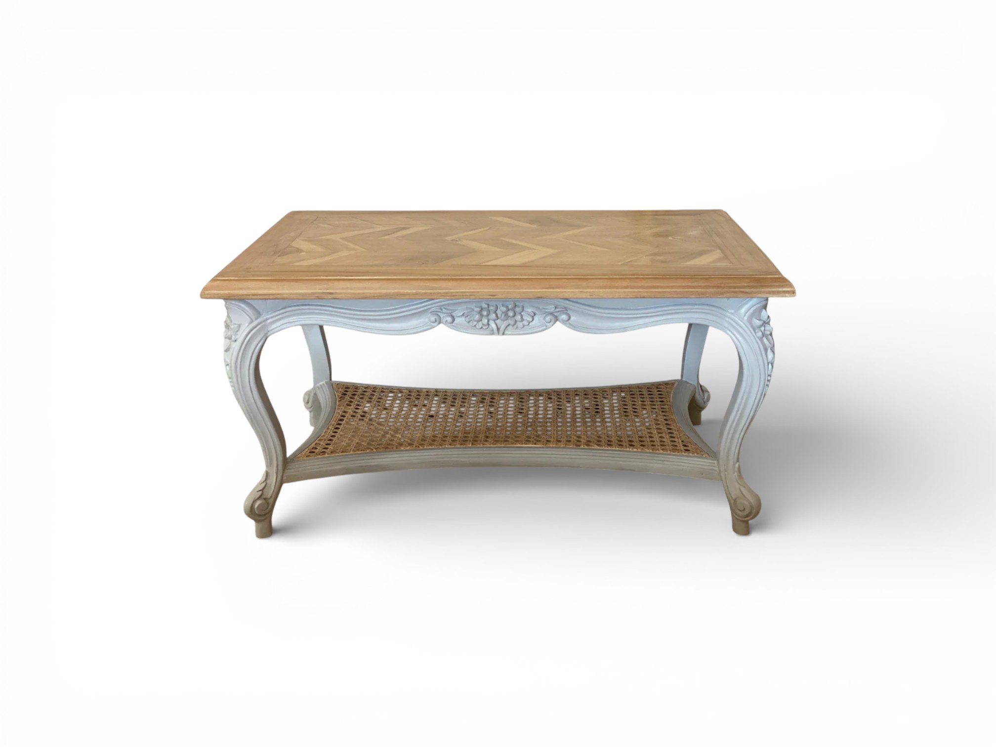 The Belleterre Cane Coffee Table brings refined elegance to classic living spaces, making it a timeless centrepiece for sophisticated interiors. With its softly curved silhouette, hand-carved accents, and warm wooden top, the Belleterre Cane Coffee Table adds charm while enhancing both traditional and transitional décor with effortless grace.