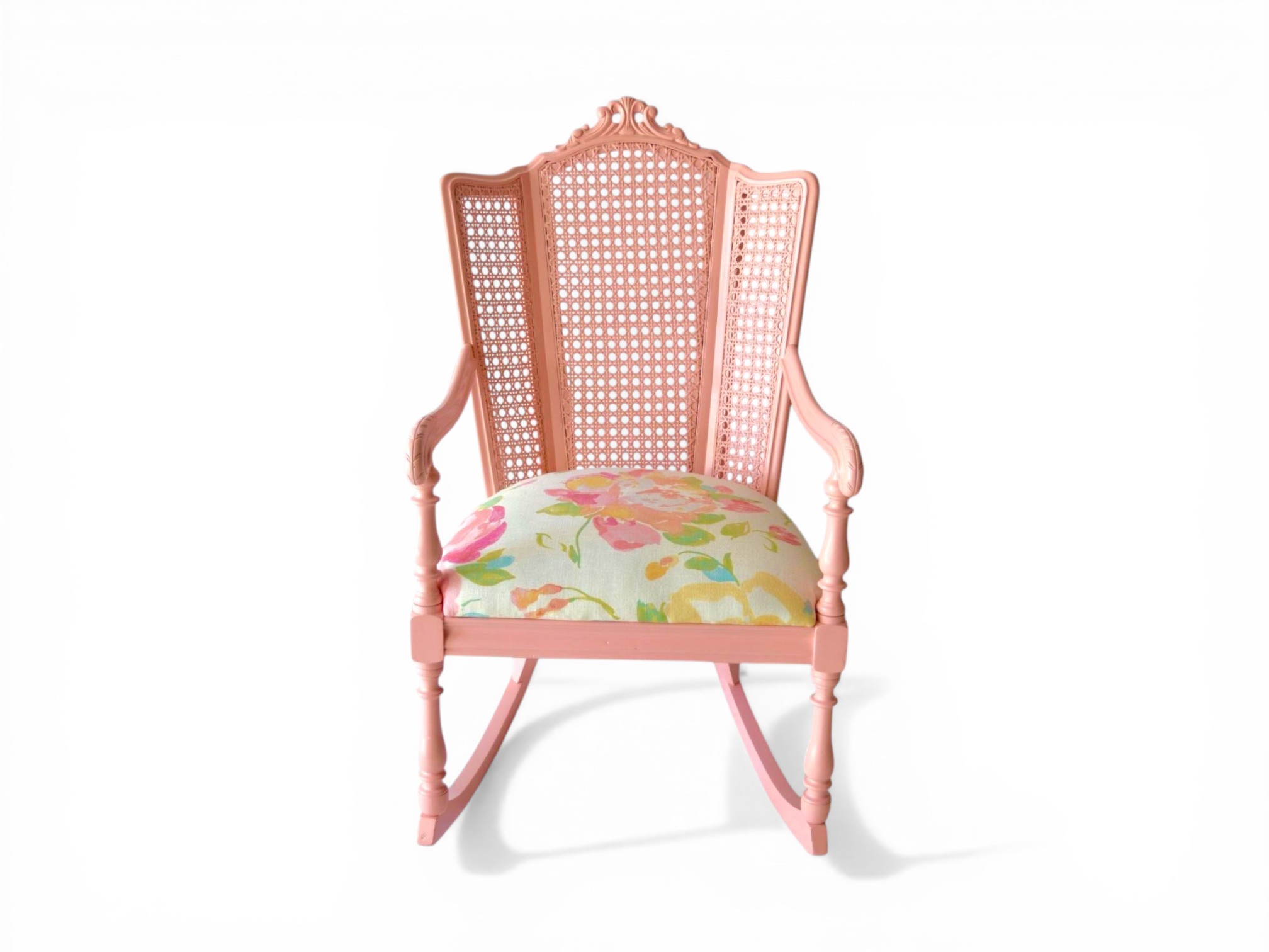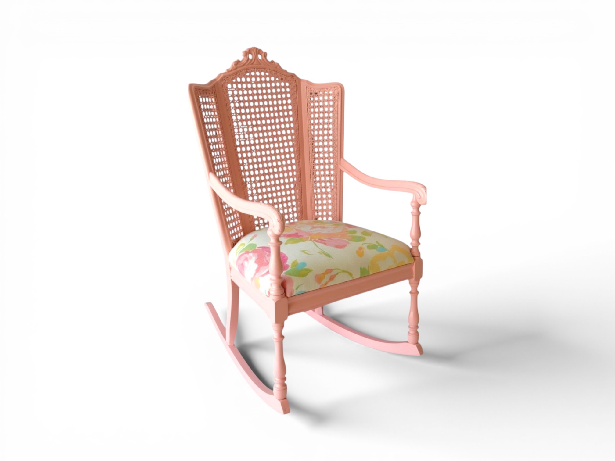 The Blush Cane Rocking Chair blends timeless craftsmanship with soft contemporary charm, making it a refined accent for elegant interiors. Its carved wooden frame features a delicate blush finish, while the handwoven cane panels add texture and visual lightness. Moreover, the curved rockers and sculpted armrests create a smooth and relaxing seating experience.