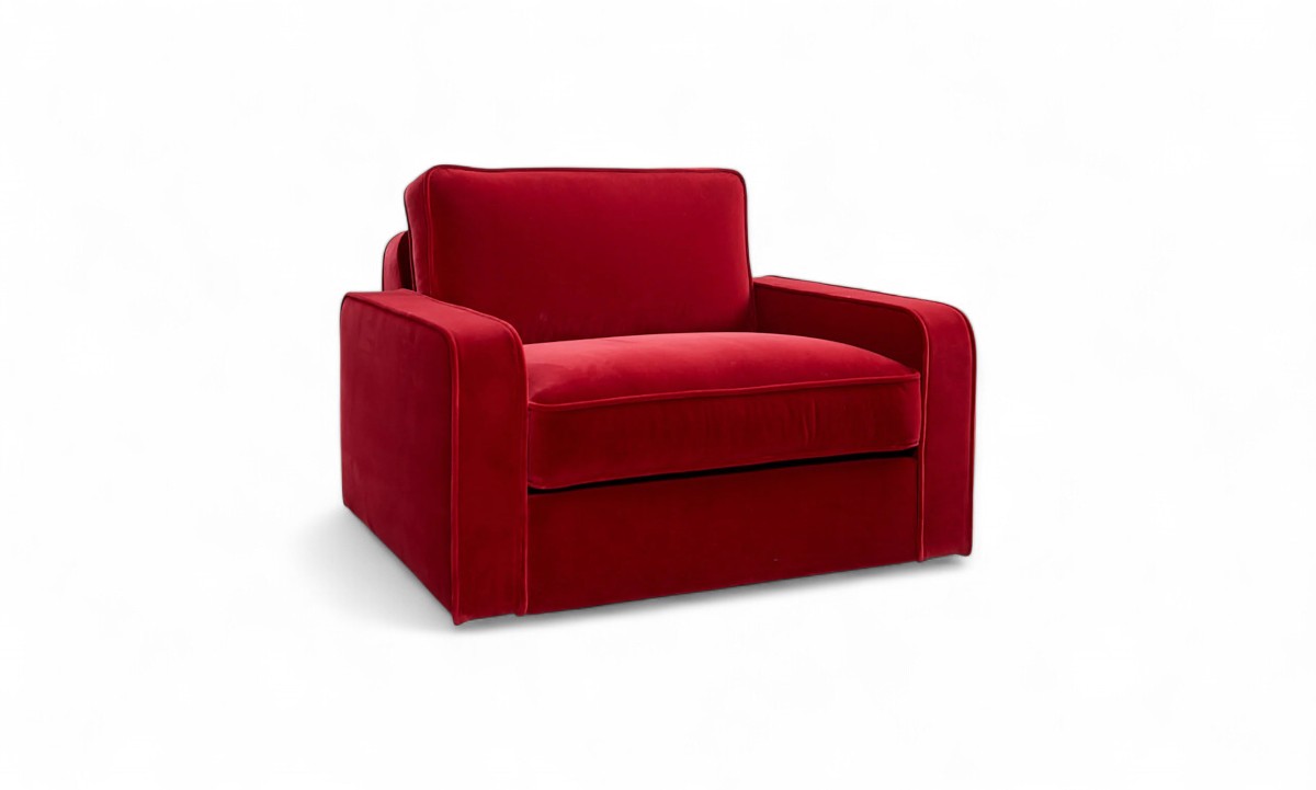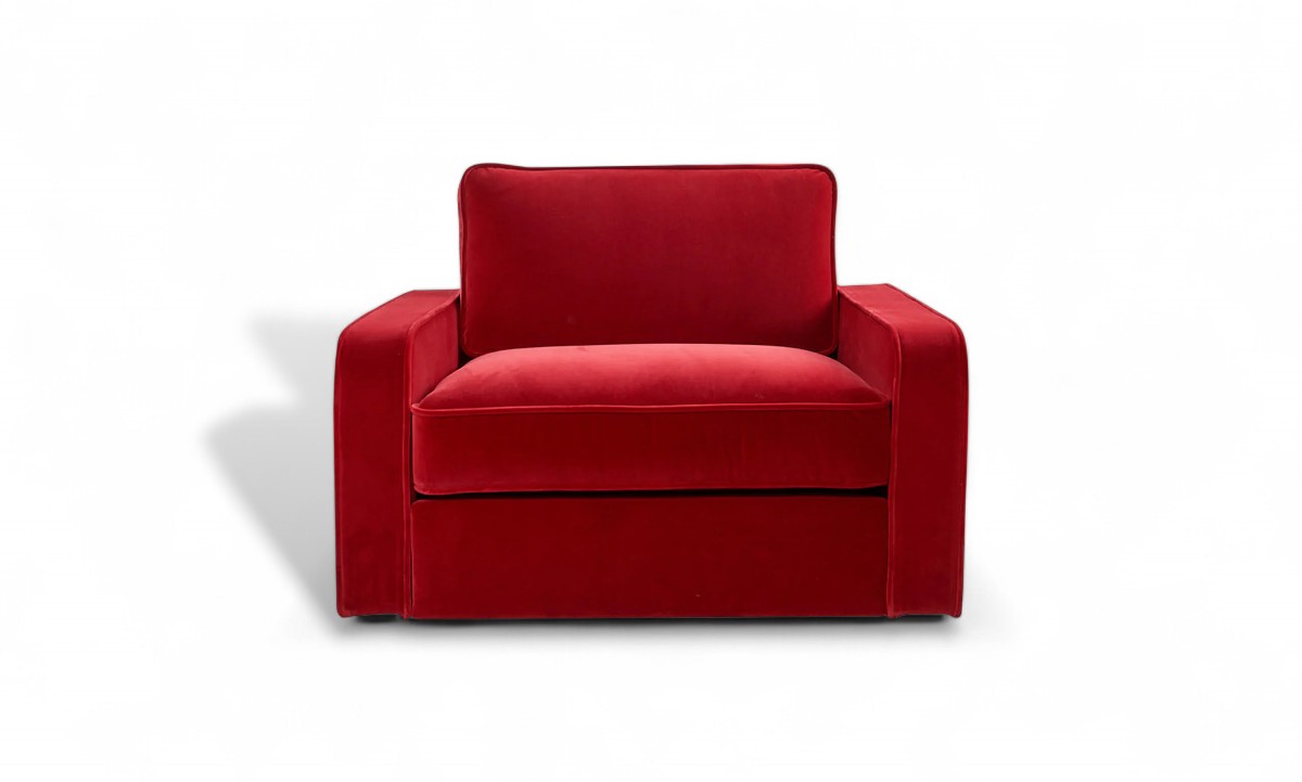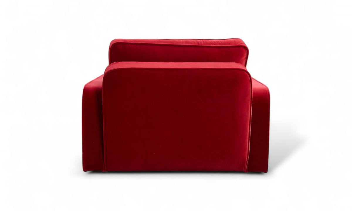The Calice Red Velvet Armchair combines sophistication with modern design, making it an eye-catching piece in any room. Upholstered in rich red velvet, this chair offers a tactile and visually striking appeal, bringing a sense of luxury and elegance to your space. The clean lines and bold colour add a contemporary touch, while the soft cushion ensures comfort for every seating experience.
