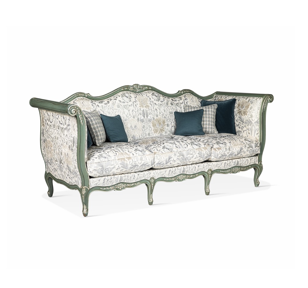 Design: Antique-style sofa with beautifully carved wooden frame and floral upholstery