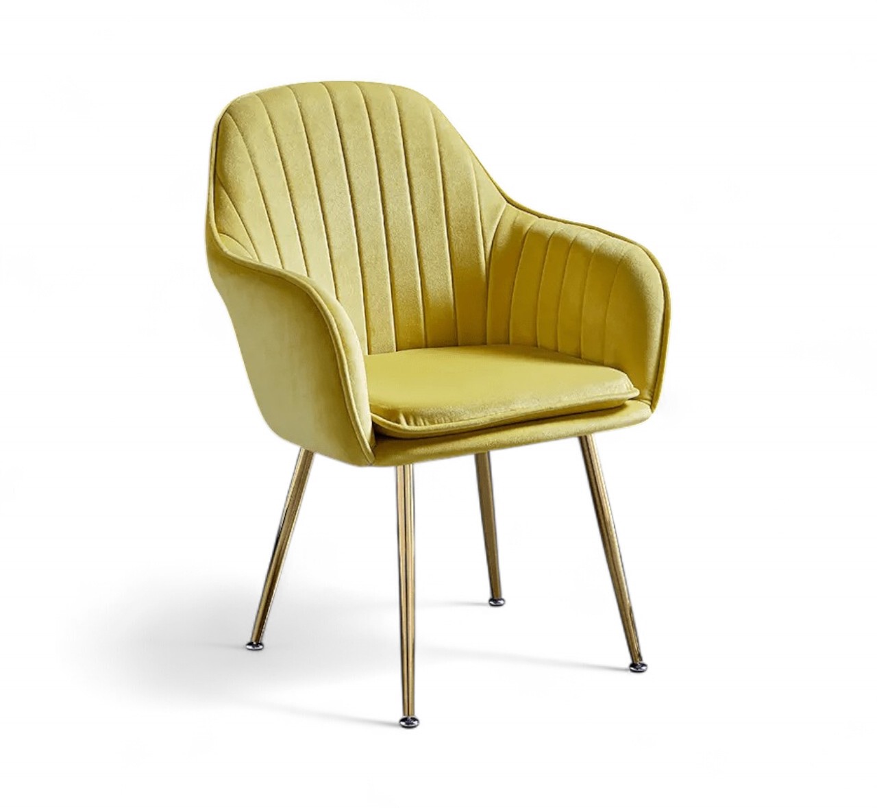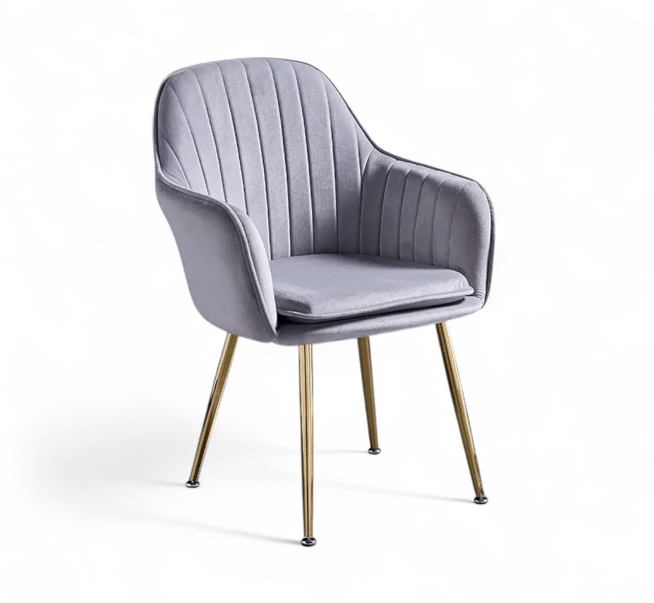 The Celestial Line Armchair strikes the perfect balance between modern minimalism and luxe detailing. Upholstered in rich royal blue velvet, its softly contoured shell design and vertical channel tufting offer a sculptural silhouette that feels both refined and inviting. The slender, gold-toned metal legs add a touch of glam, making it a standout piece for contemporary interiors.