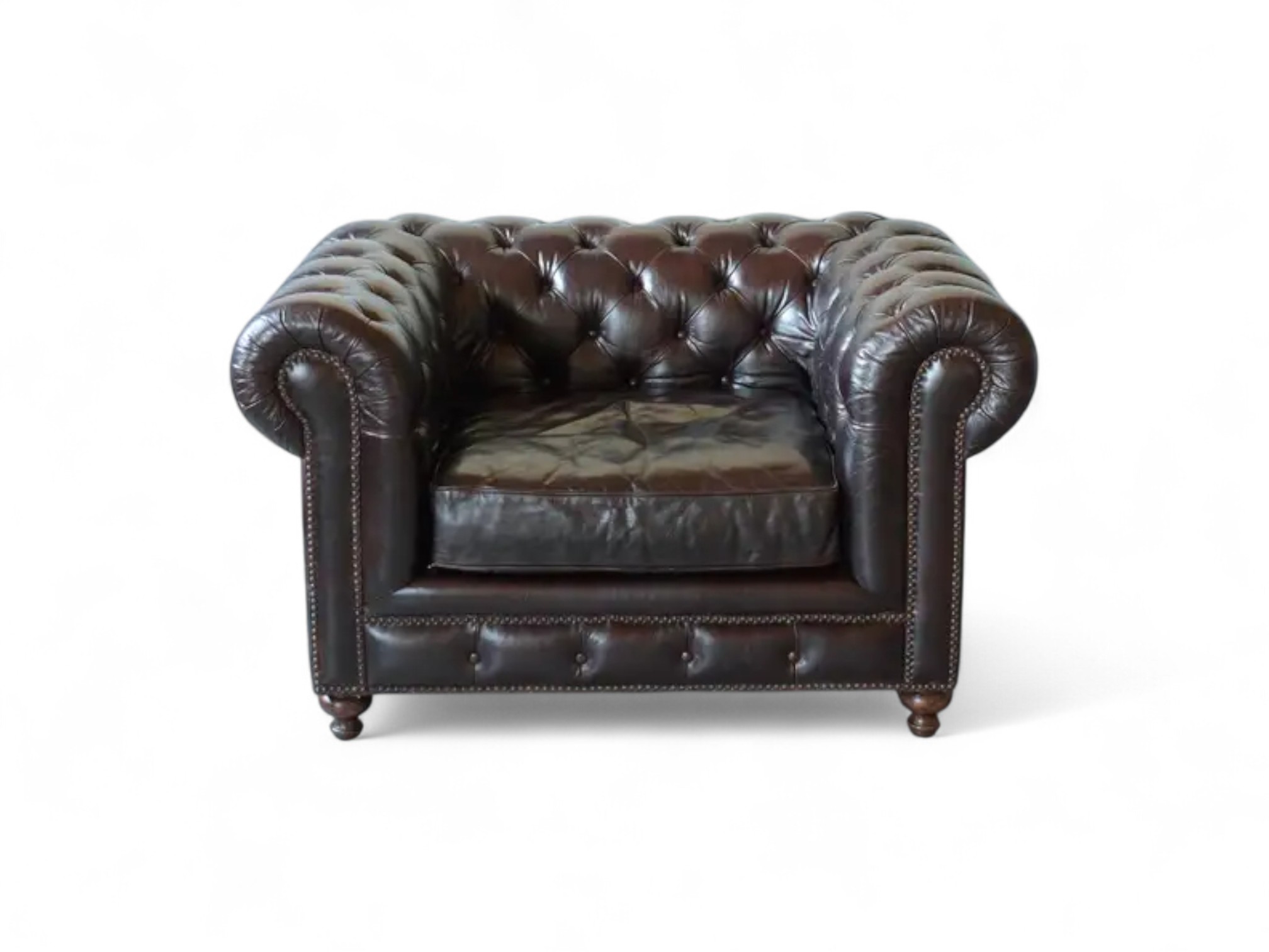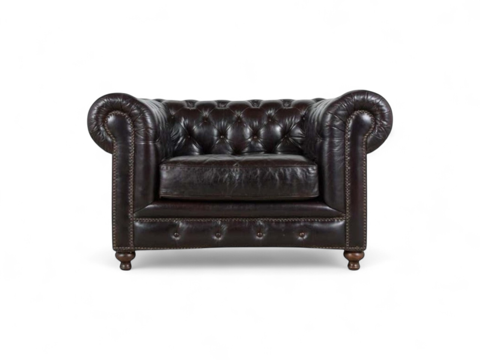 The Chesterfield Leather Armchair stands as a true symbol of timeless sophistication, with its iconic deep-button tufting and luxurious leather upholstery. Its classic design, paired with sturdy wooden legs, exudes an air of refinement, making it an ideal statement piece for traditional and contemporary interiors alike. Perfect for creating an inviting yet upscale atmosphere, this armchair enhances both comfort and style in any room.