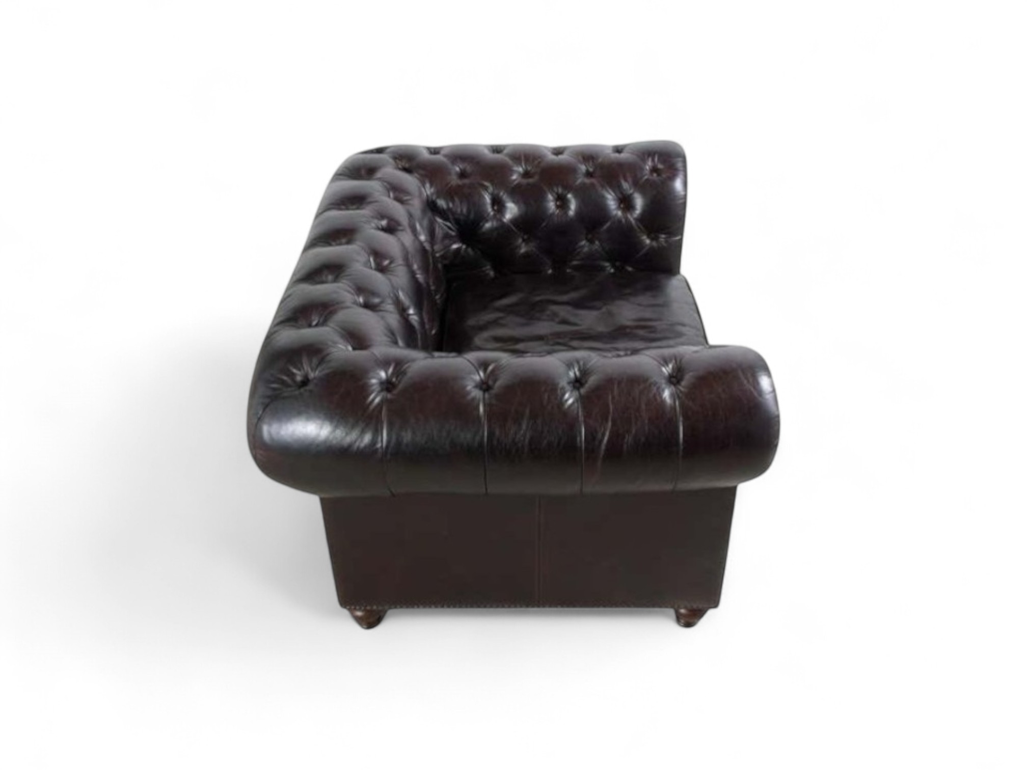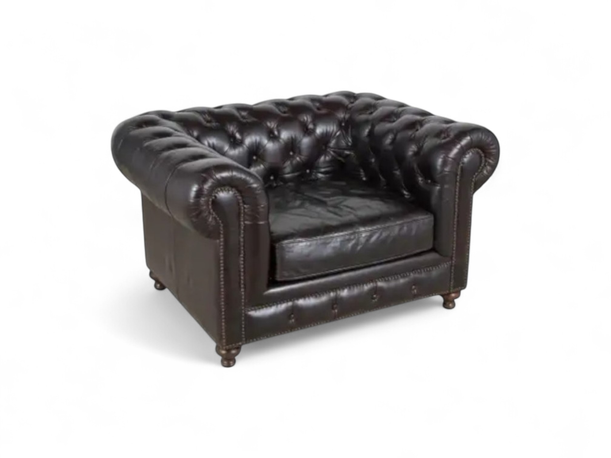 Design: Iconic deep-button tufting with elegant brass nailhead detailing
