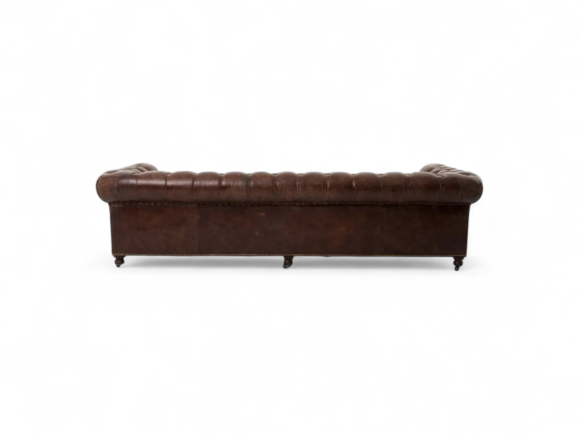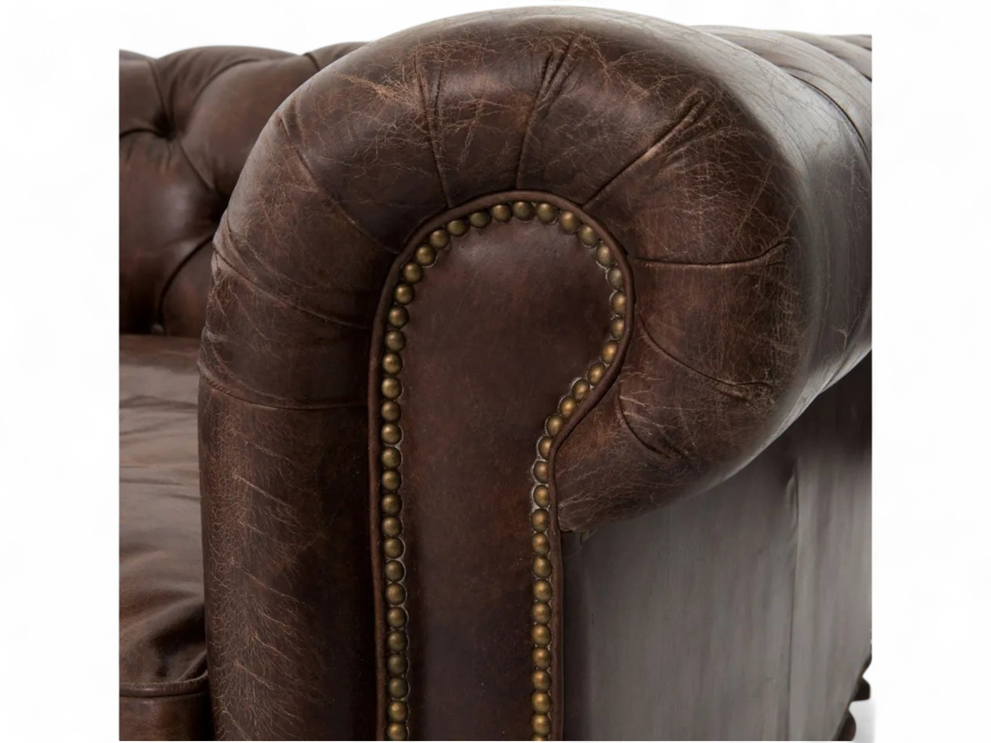 Design: Timeless Chesterfield style with deep button tufting, rolled arms, and a low back