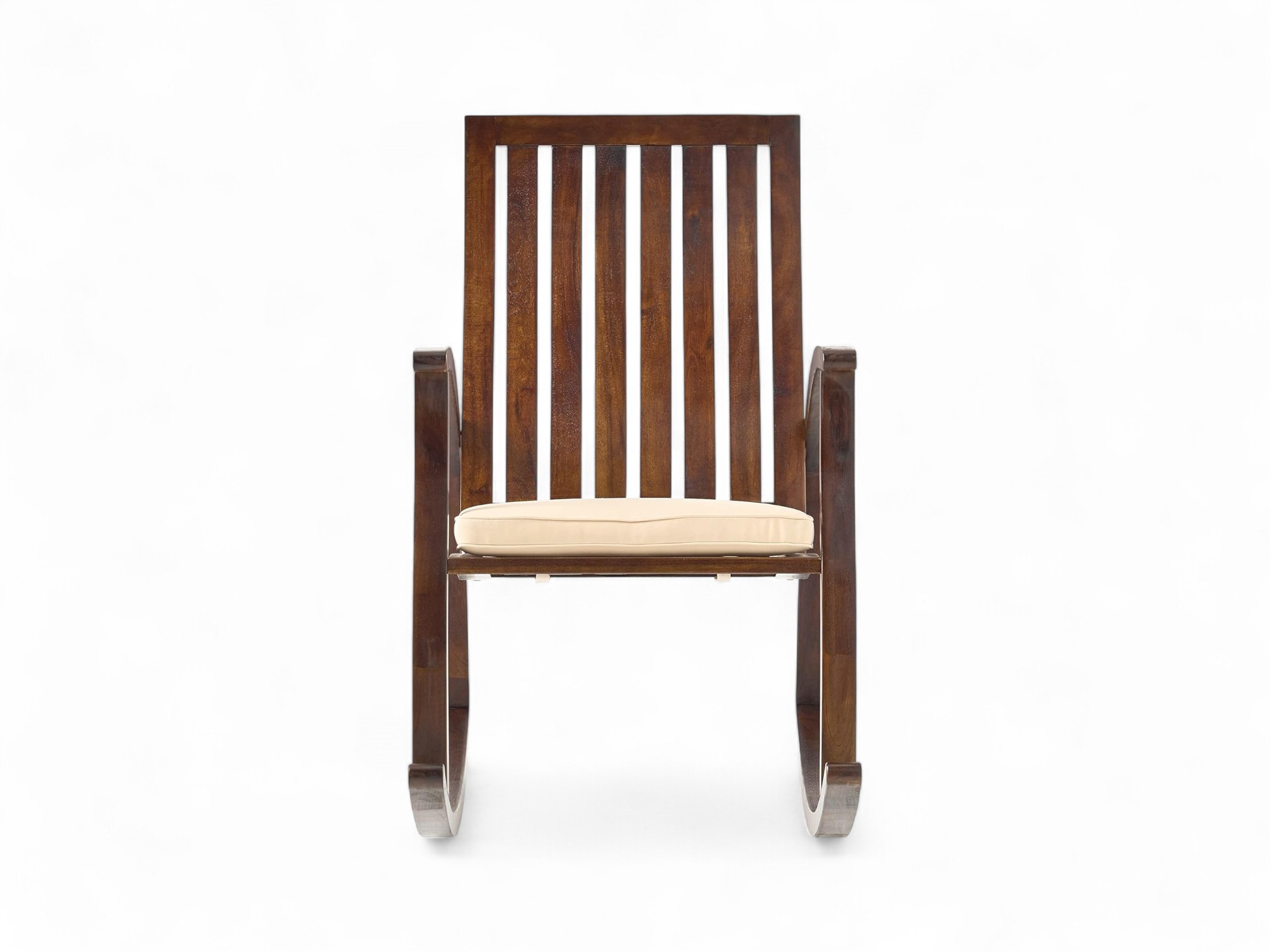 The Classic Slat-Back Rocker blends timeless elegance with ergonomic comfort, making it a charming addition to both traditional and modern interiors. Featuring a high slatted backrest, gracefully curved armrests, and a smooth walnut finish, this rocker offers sturdy support and a balanced, soothing motion. The cushioned seat adds a touch of softness, ensuring comfort through long hours of relaxation.