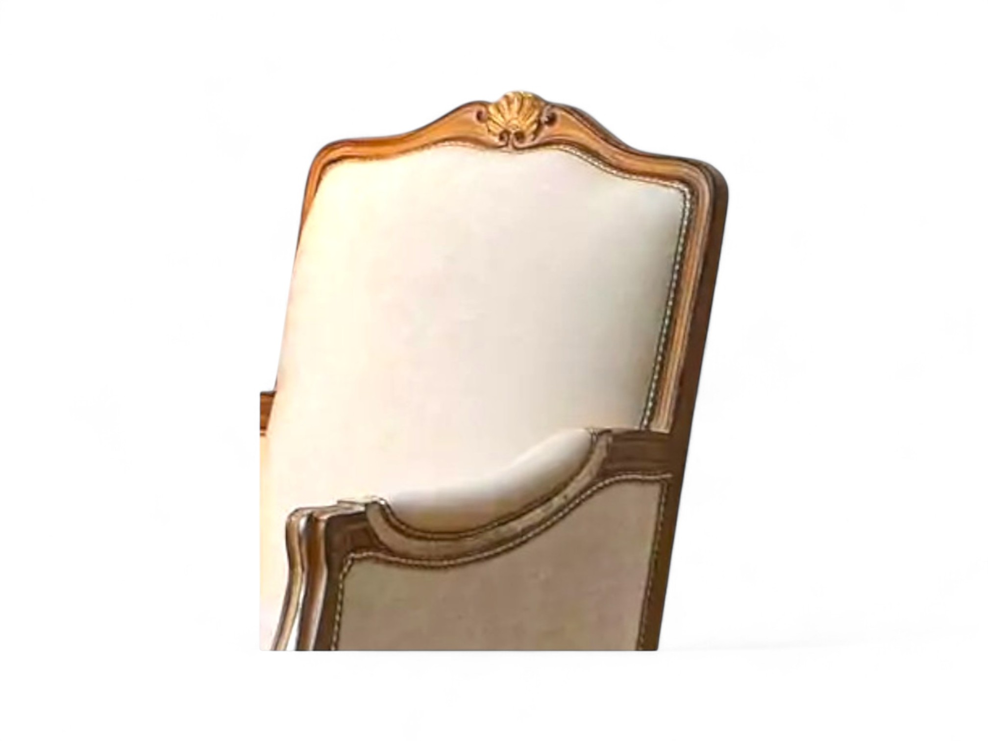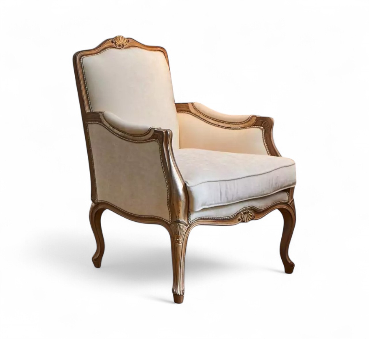 The Classic Venetian Armchair captures the grandeur of Old World craftsmanship with its ornate carved wood frame and refined upholstery. Inspired by traditional Venetian design, it features elegant cabriole legs, scroll arms, and intricate detailing that bring regal sophistication to any interior. Upholstered in soft neutral fabric, this armchair pairs timeless aesthetics with everyday comfort.