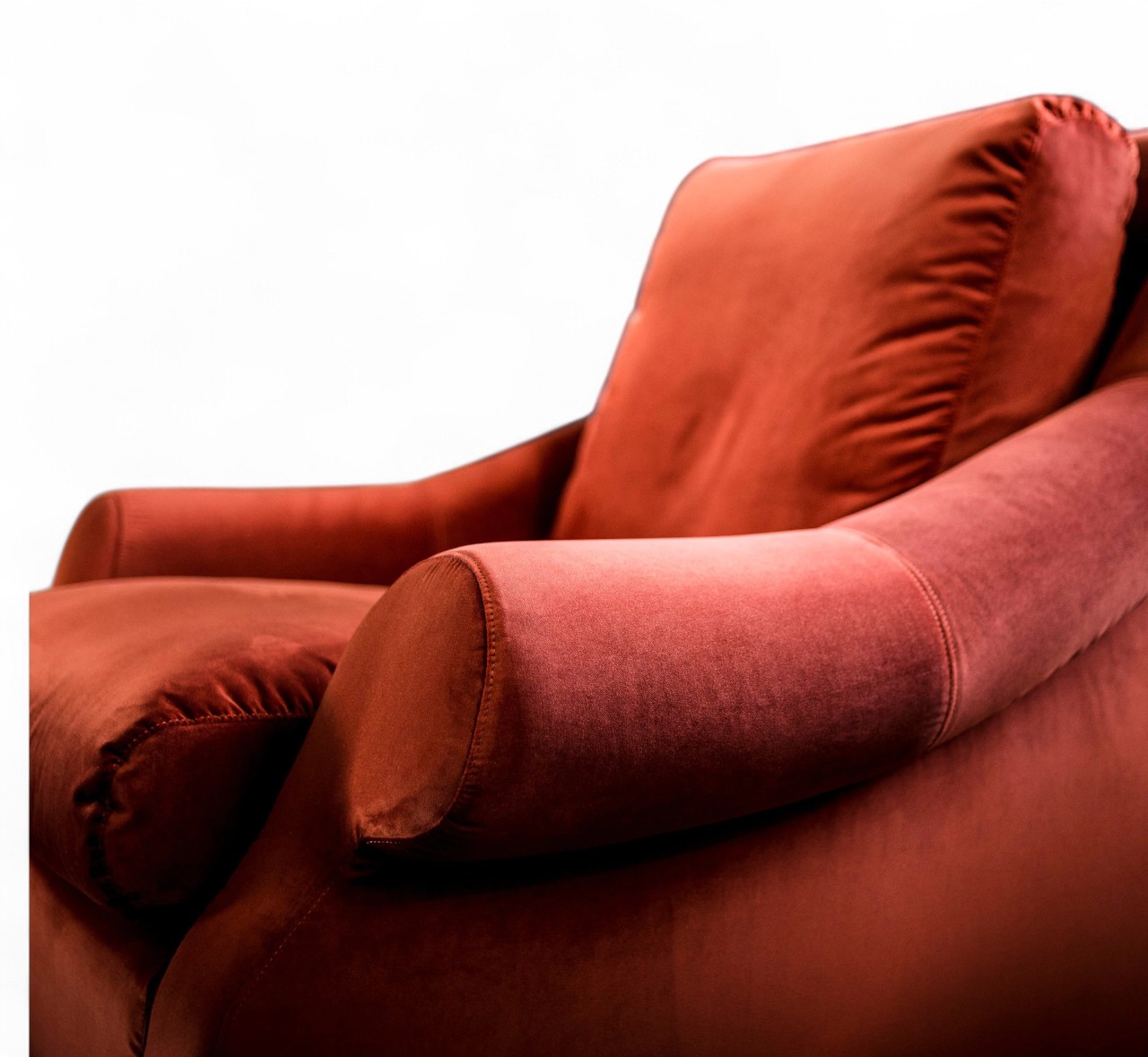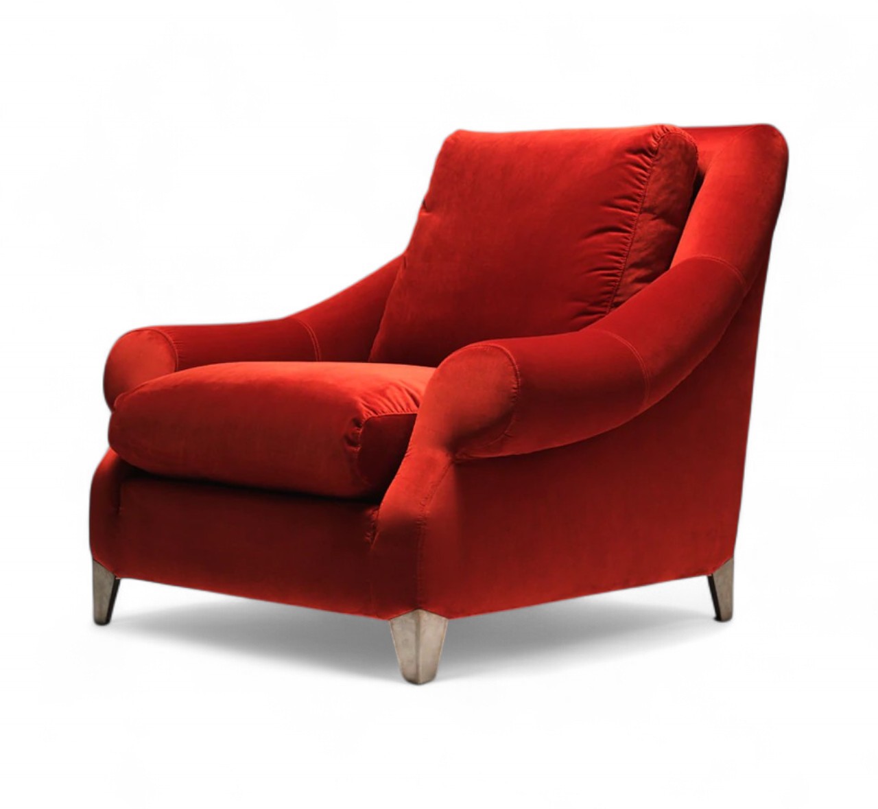 Crafted with a sturdy frame and upholstered in premium velvet, the Crimson Luxe Armchair offers lasting durability alongside unmatched comfort. Its deep seating and supportive padding create the perfect spot for unwinding, while the timeless silhouette ensures it blends seamlessly into contemporary and classic interiors alike.