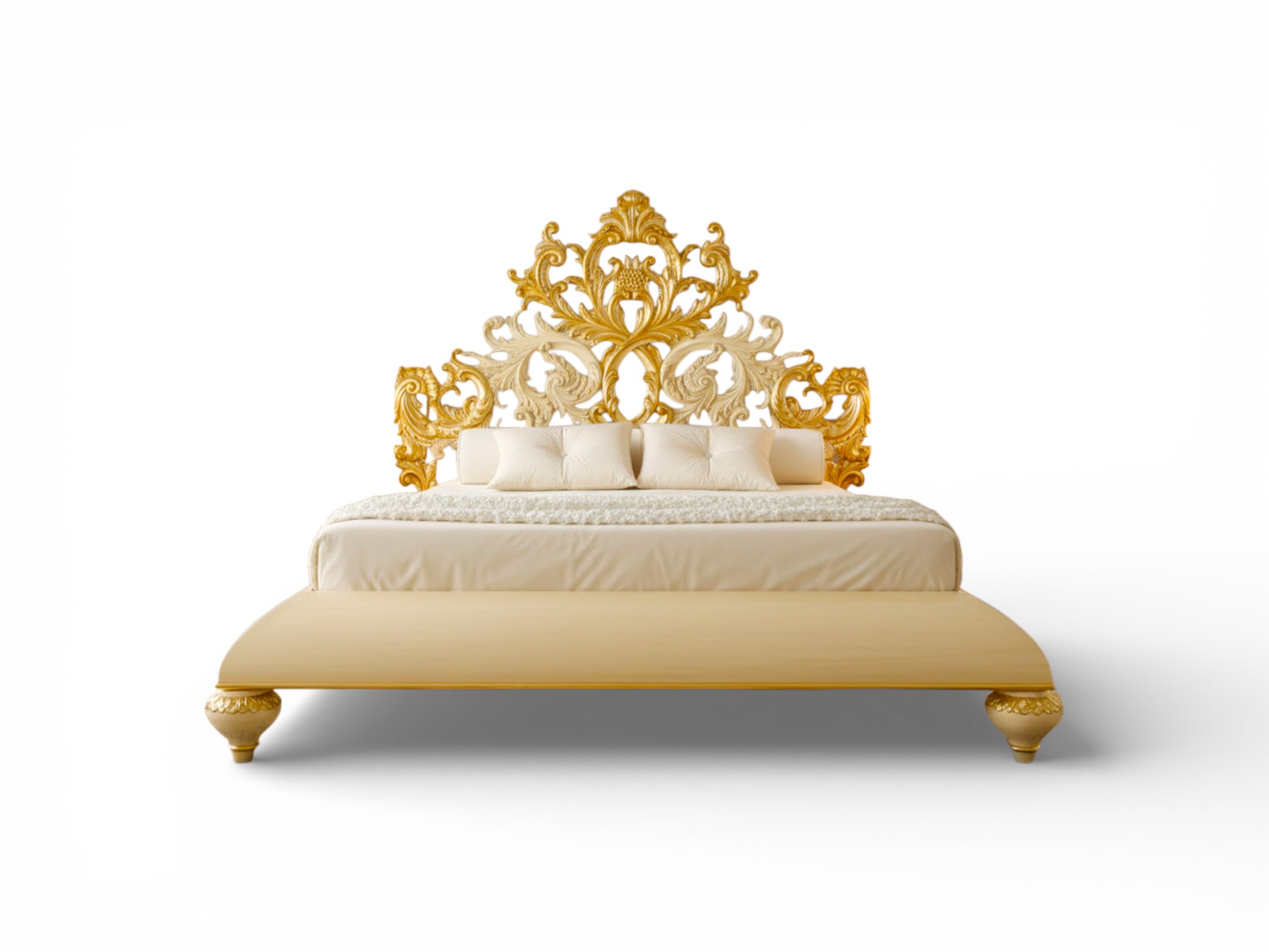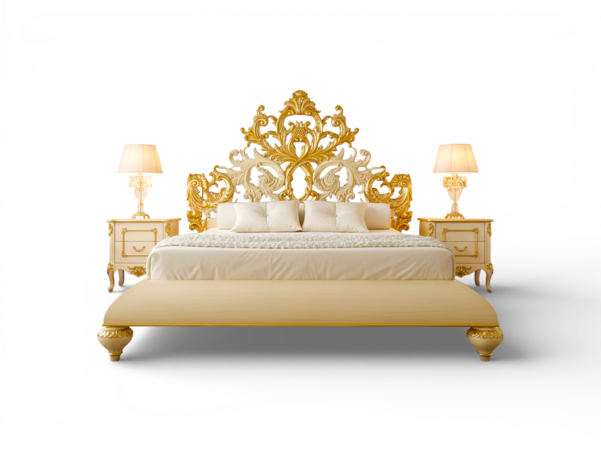 With its expansive base and solid wood construction, Crown Throne Bed delivers strength, balance, and architectural grandeur. Moreover, the layered gilded accents enhance depth and richness, while the commanding proportions anchor luxurious spaces, making it ideal for ultra-premium villas, royal hospitality projects, and palace-inspired residences.