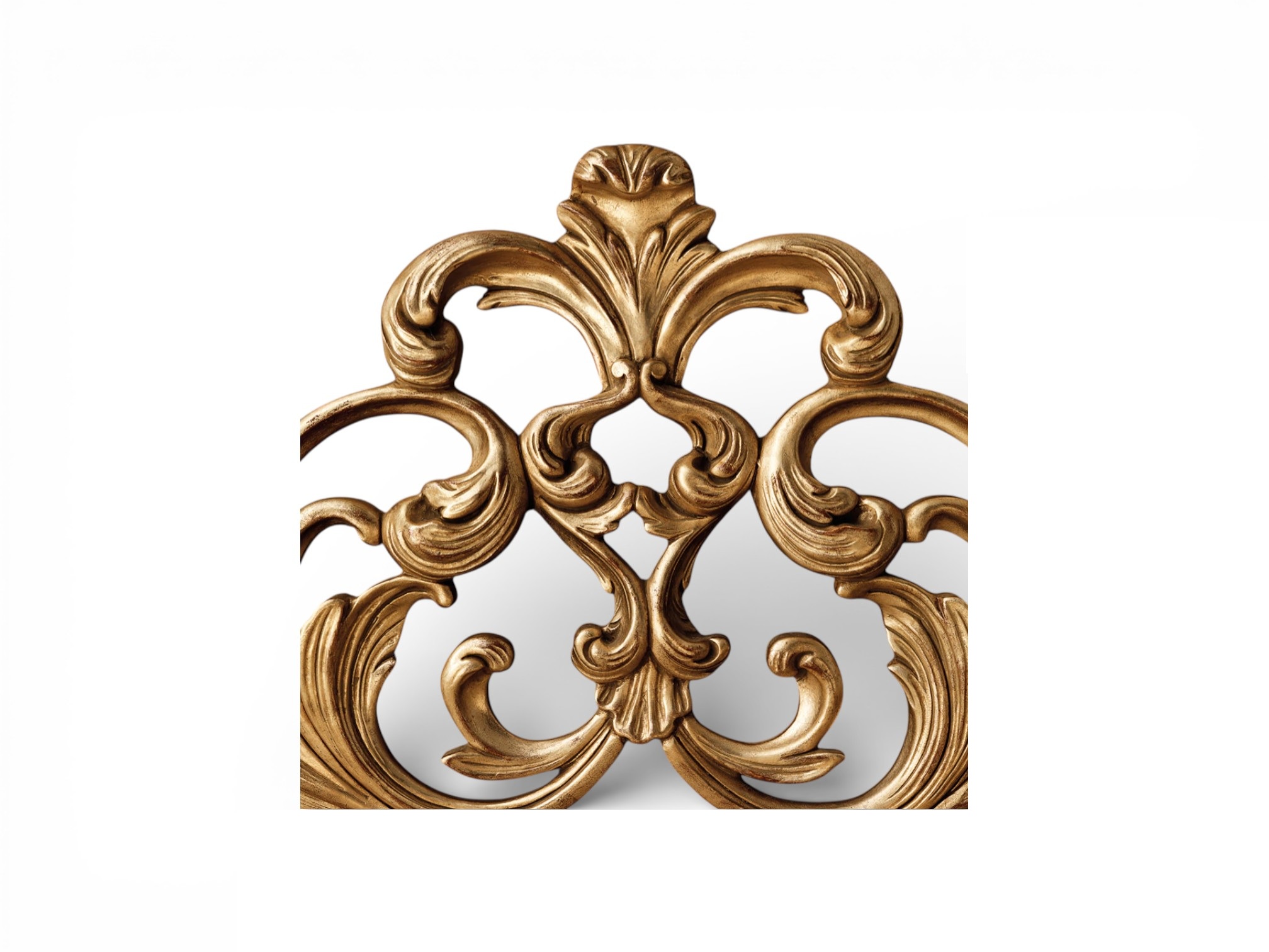 Hand-carved scrollwork headboard with crown motif
