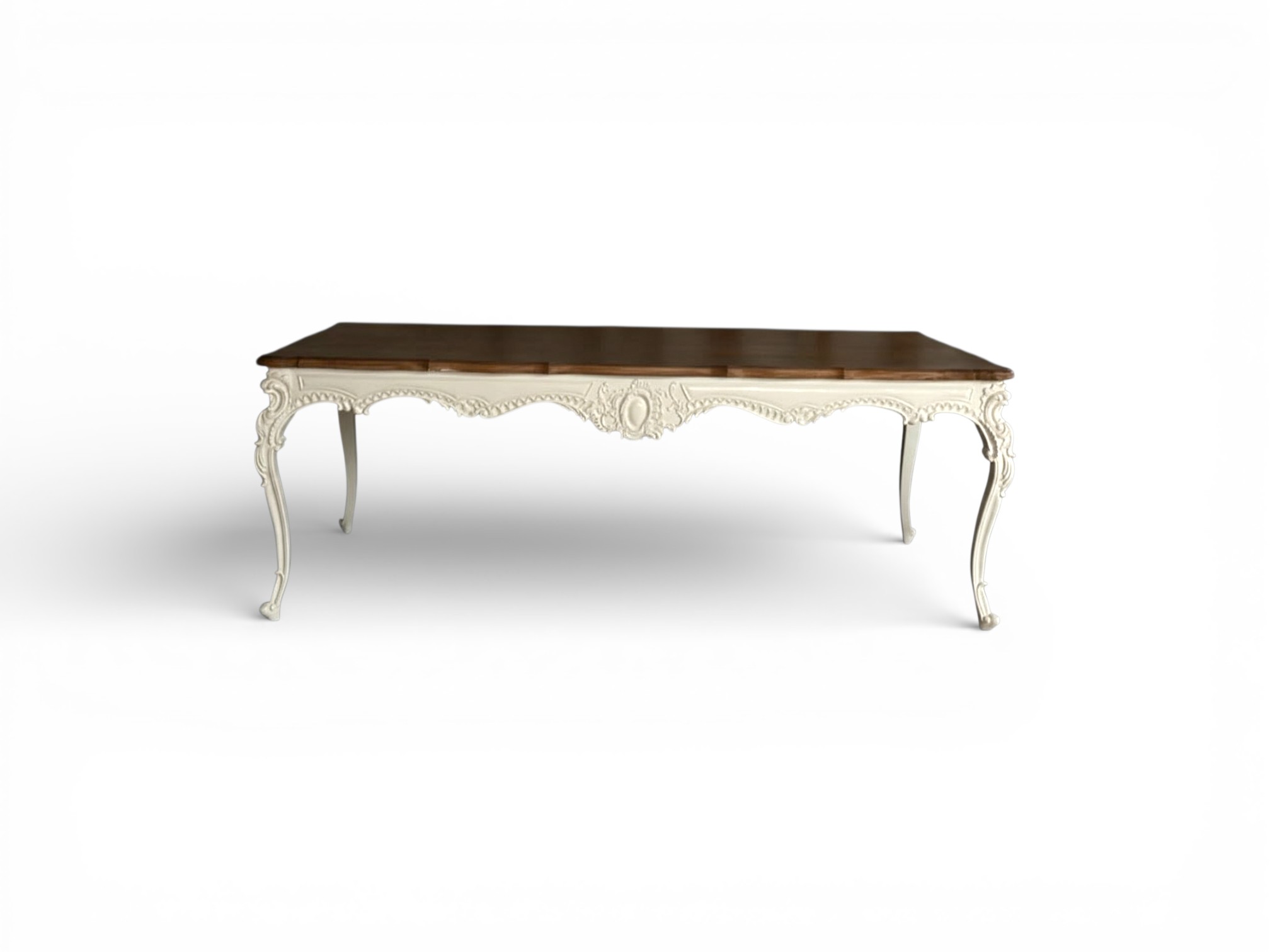 Built from premium solid wood, this table ensures lasting strength while showcasing artisanal craftsmanship throughout its carved apron and elegant legs. Moreover, the polished tabletop offers ample surface space, while the refined silhouette seamlessly complements classic as well as heritage-inspired interiors.