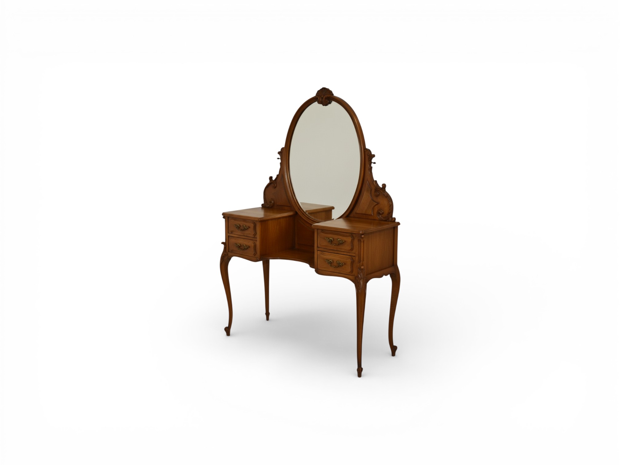 The Eloria Oval Dressing Table is crafted to bring timeless charm into refined interiors, showcasing an elegant oval mirror framed by subtle carvings and balanced curves. Designed to elevate classic bedrooms, the Eloria Oval Dressing Table combines graceful proportions with a warm wooden finish, creating a softly contoured structure that exudes a sophisticated yet inviting presence.
