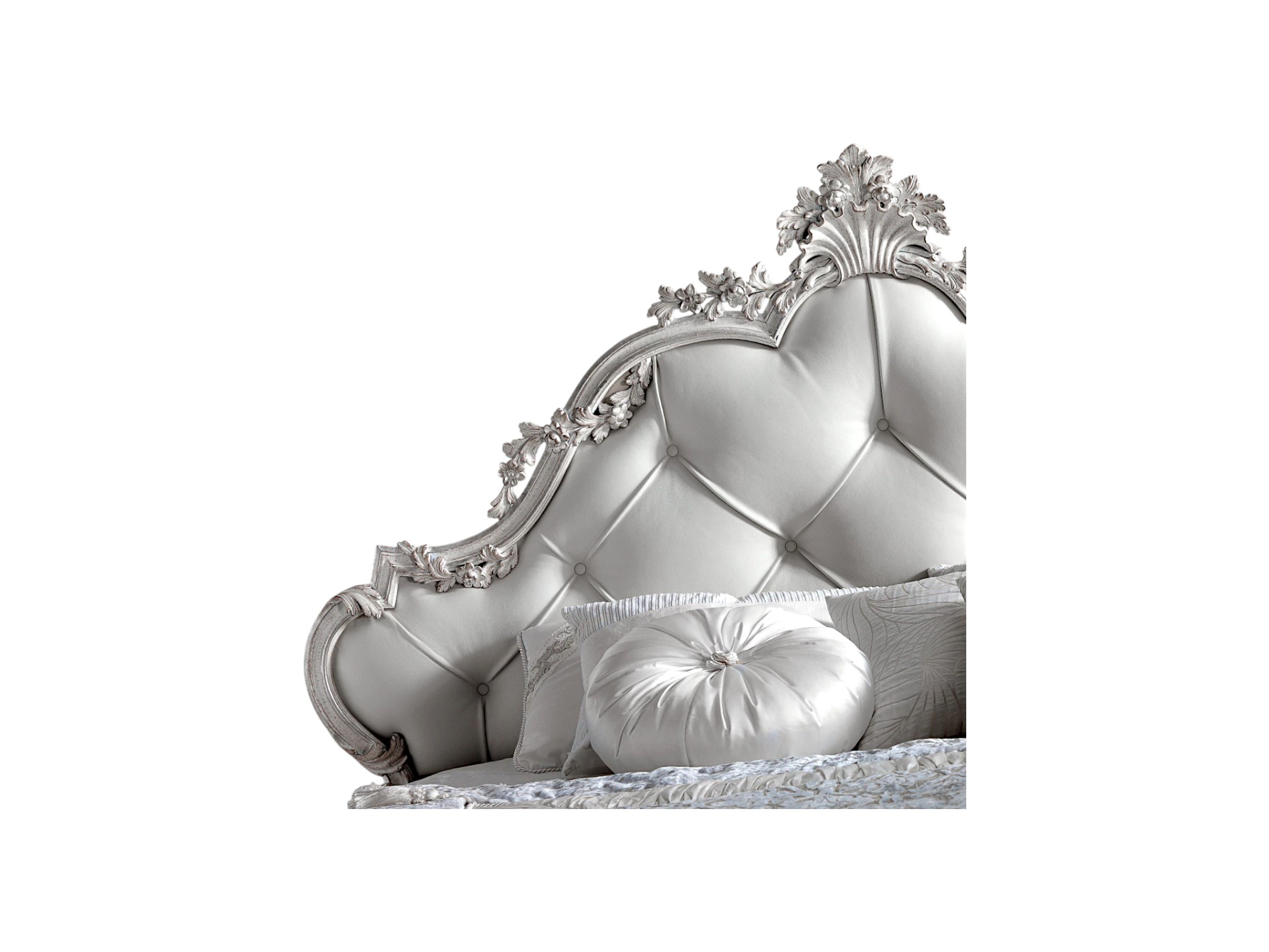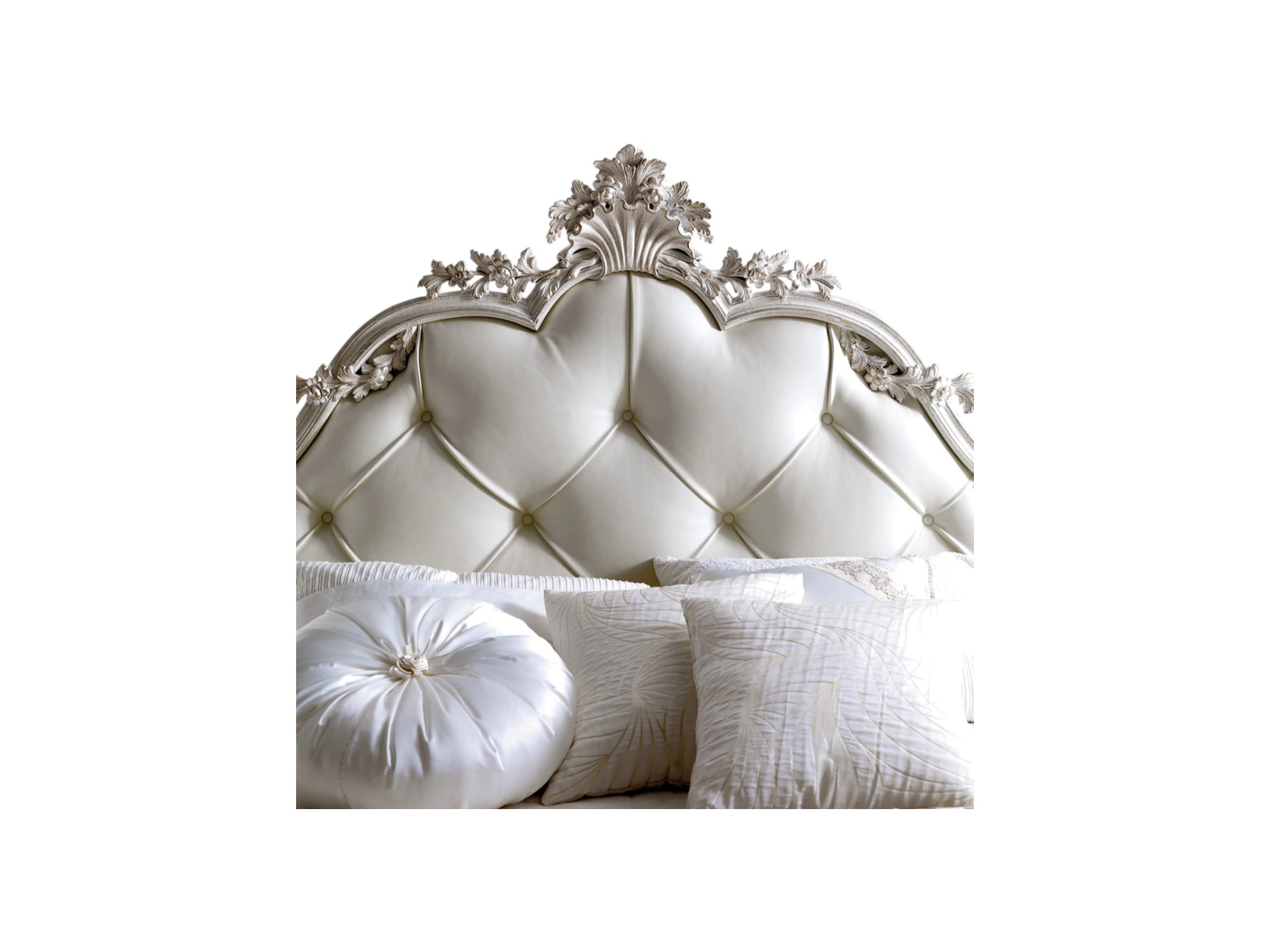 • Crown-inspired carved headboard