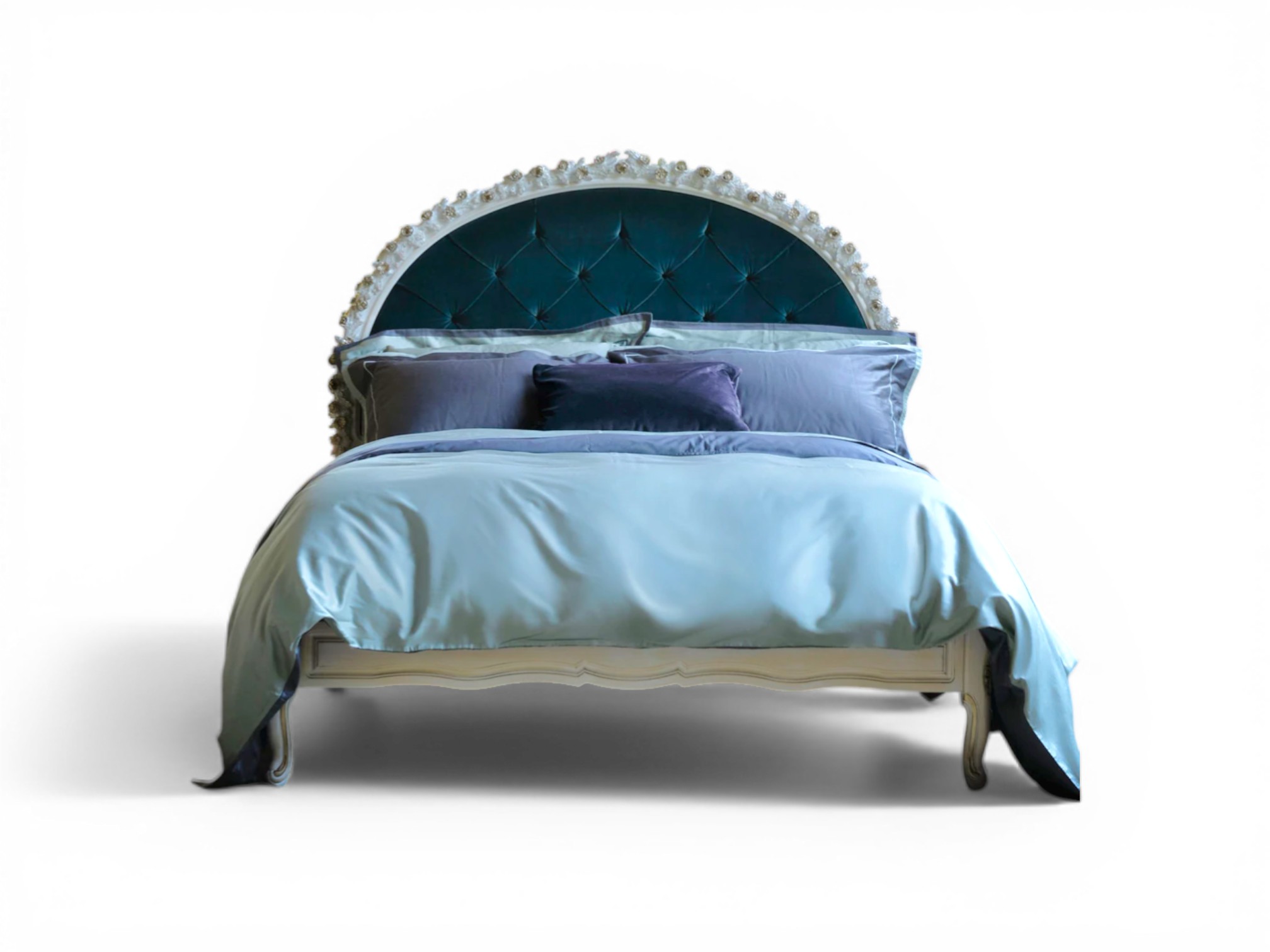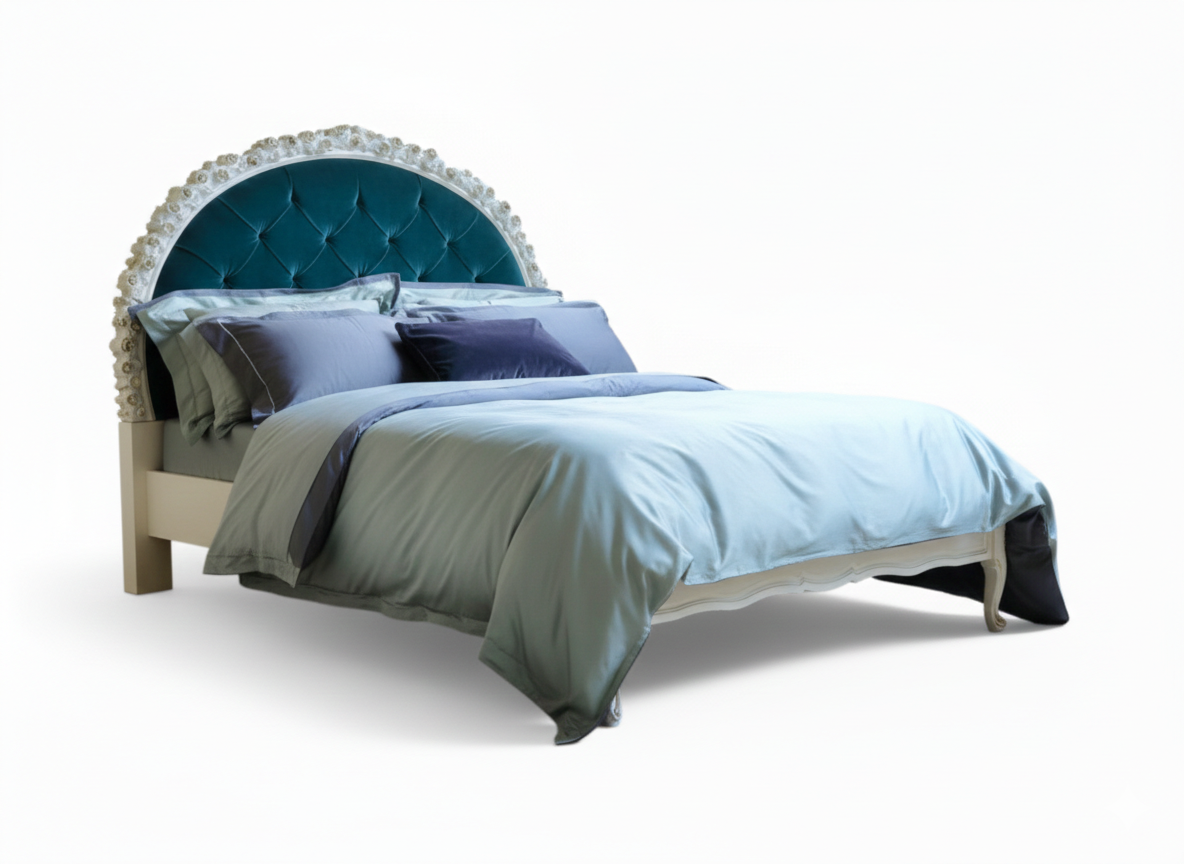 The Empress Tiara Bed captivates with its grand arched headboard, crowned by intricate ornamental detailing that resembles a royal tiara. Deep button tufting enhances the rich upholstery, while the sculpted wooden frame adds graceful structure and refinement. Moreover, the Empress Tiara Bed elevates master bedrooms with a poised, regal presence that feels both majestic and harmonious.