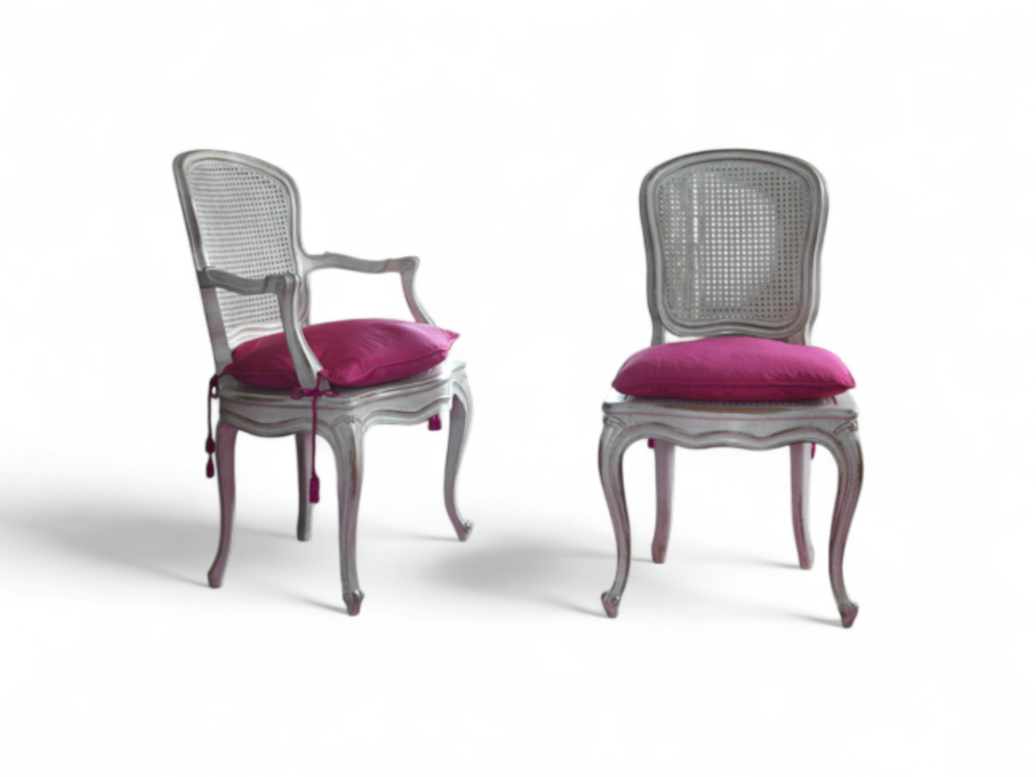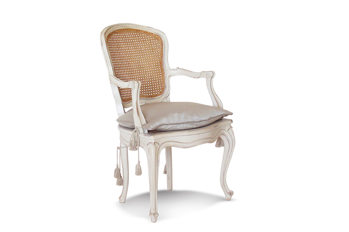 From dining rooms to dressing areas, this chair is a refined accent piece that combines both visual appeal and practical comfort. With its scrolled arms, delicate detailing, and provincial personality, the French Cane Accent Chair complements traditional, romantic, and country-chic interiors alike.