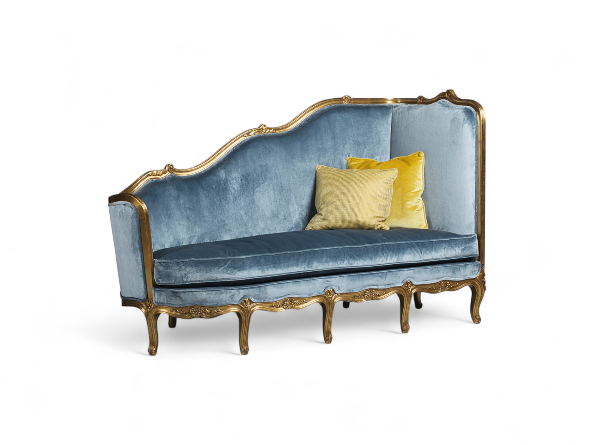 The French Chaise Lounge is a luxurious statement piece that blends timeless French design with modern comfort. Handcrafted with a carved golden frame and deep cushioned seating, it offers both elegance and relaxation. Upholstered in premium velvet, this chaise lounge is available in sophisticated grey and vibrant blue, making it versatile for a variety of interiors.