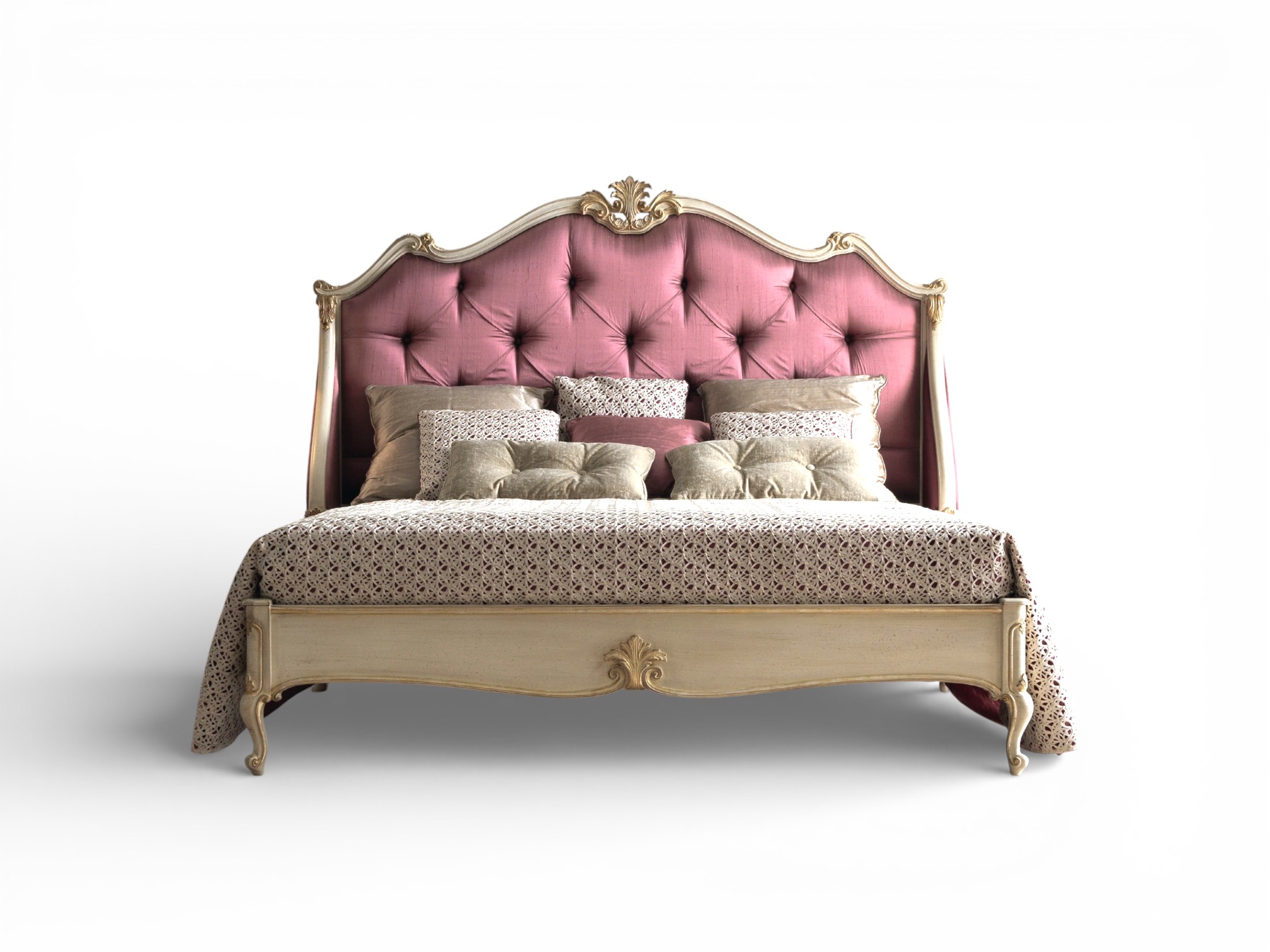 Crafted from solid wood with a generously padded headboard, French Luxe Bed offers enduring durability alongside indulgent comfort. Moreover, the deep button tufting enriches texture and dimension, while the elegant cabriole legs reinforce its classic European presence, making it ideal for luxury villas, boutique residences, and high-end hospitality suites.