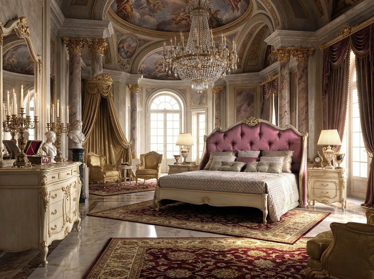 French Luxe Bed embodies refined Parisian elegance with its sculpted wooden frame, gracefully curved silhouette, and plush tufted upholstery that radiates romantic sophistication. Designed to elevate luxury interiors, it blends soft blush tones with delicate carved detailing, creating a harmonious balance between femininity and grandeur. The flowing crest and subtle gilded accents enhance its aristocratic charm while maintaining timeless grace.