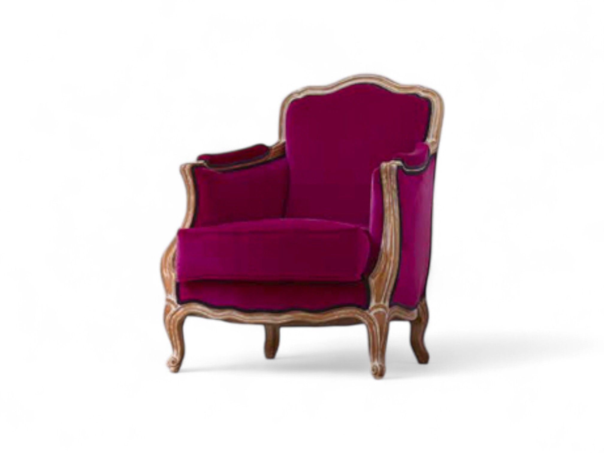 Built with a solid wooden frame, the Fuchsia Elegance Accent Chair is as sturdy as it is stunning. The deep, rich colour contrasts beautifully with the ornate wooden legs, creating a piece that’s both timeless and striking. Whether used as a focal point or an elegant complement to other furniture, this chair elevates the aesthetic of any room.
