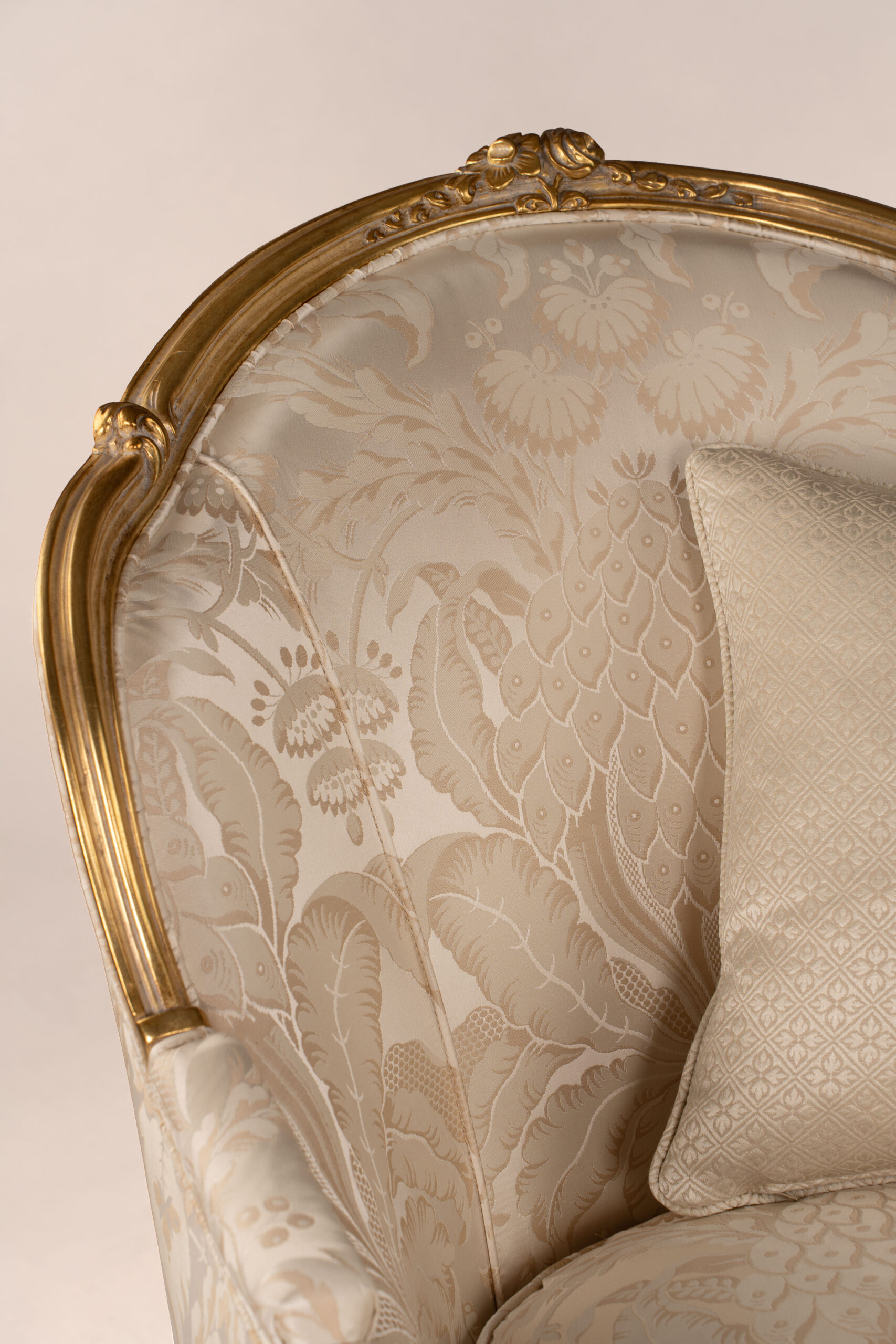 • Design: French Louis–XV-inspired silhouette with curved arms and backrest