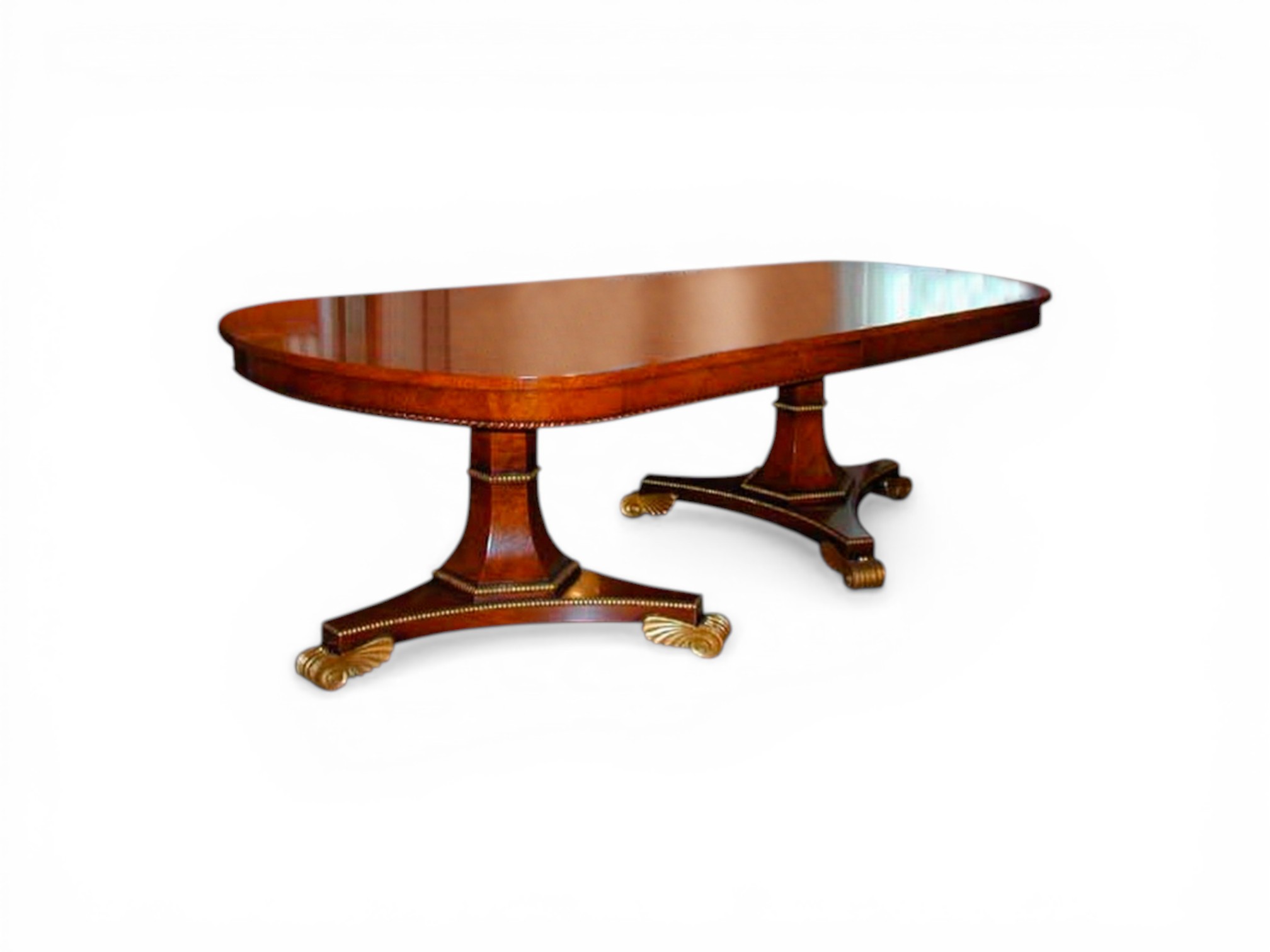 • Double pedestal base with sculptural detailing