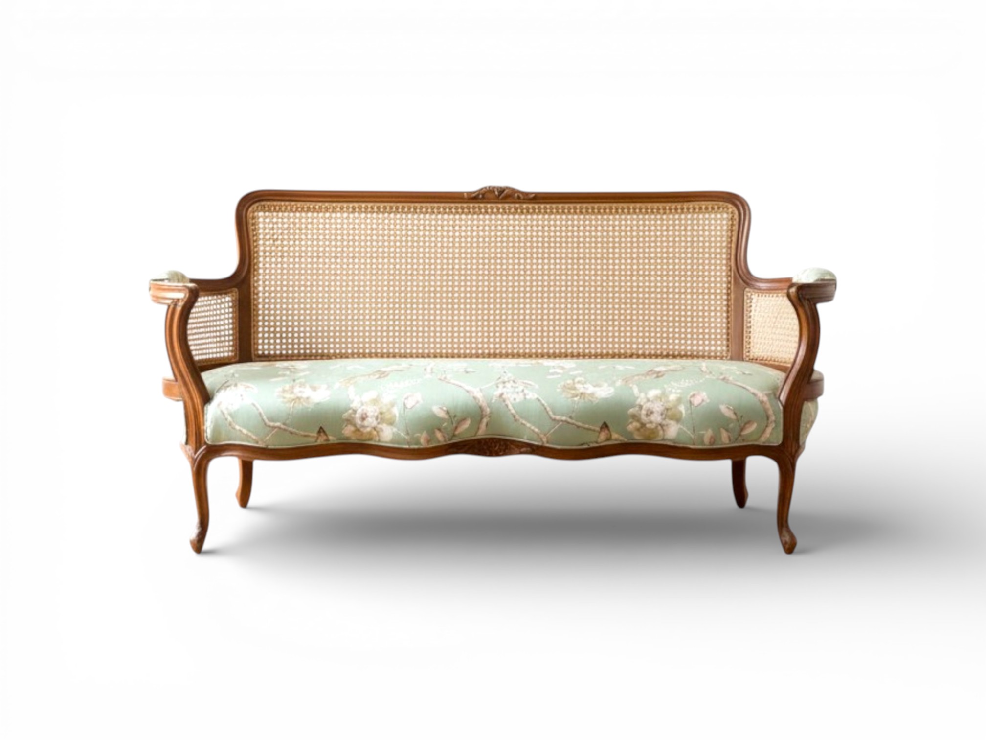 The Jade Wicker Sofa blends natural elegance with classic craftsmanship to create a refined seating piece. Its beautifully polished wooden frame features woven wicker panels that add texture and timeless charm. Meanwhile, the soft jade-toned floral upholstery introduces a fresh and elegant contrast to the warm wood finish. As a result, this sofa becomes a graceful centrepiece that enhances both heritage and contemporary interiors.