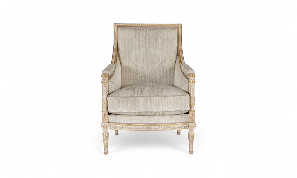 Design: Plush armchair with a classic silhouette and luxurious upholstery.