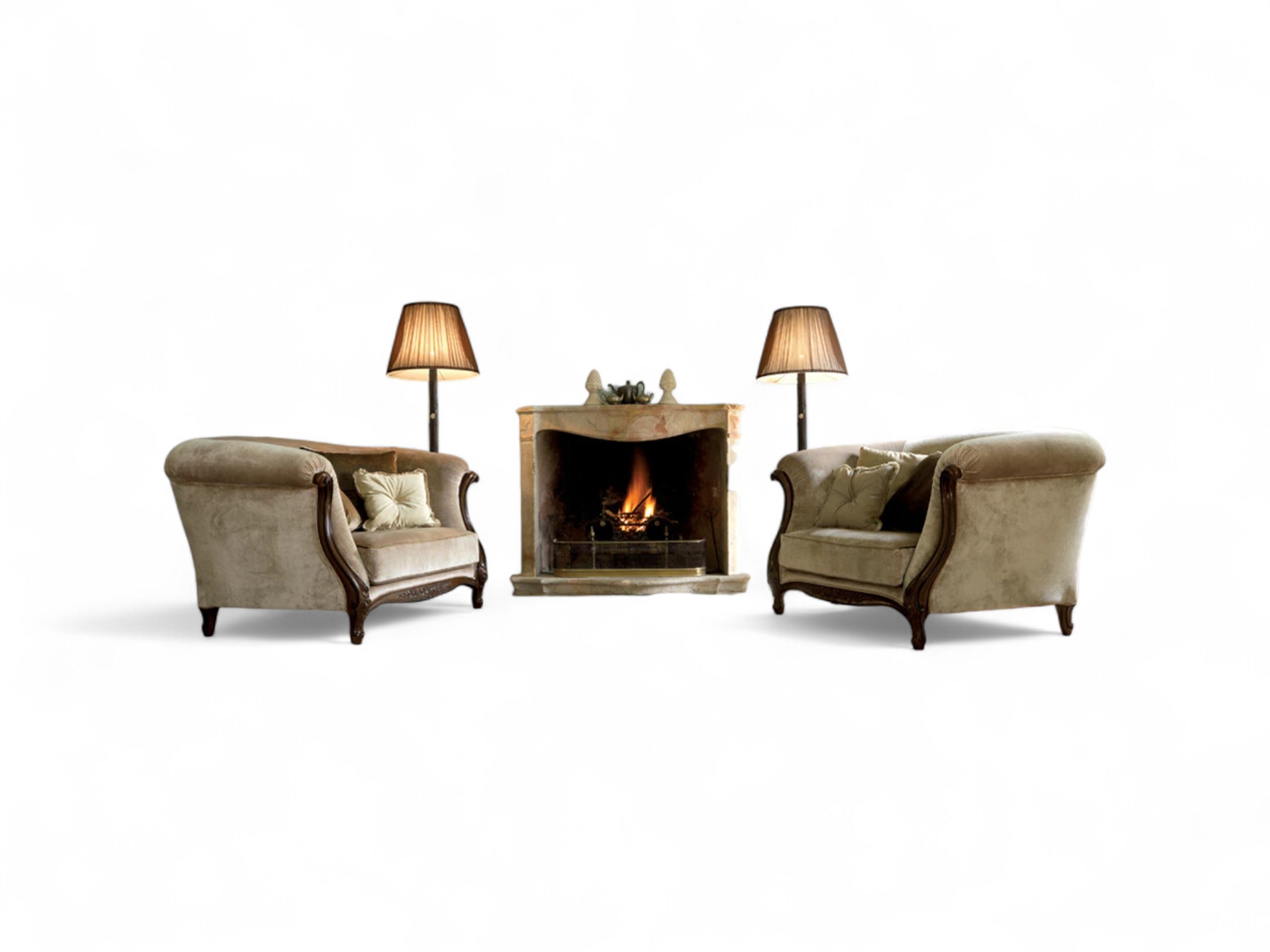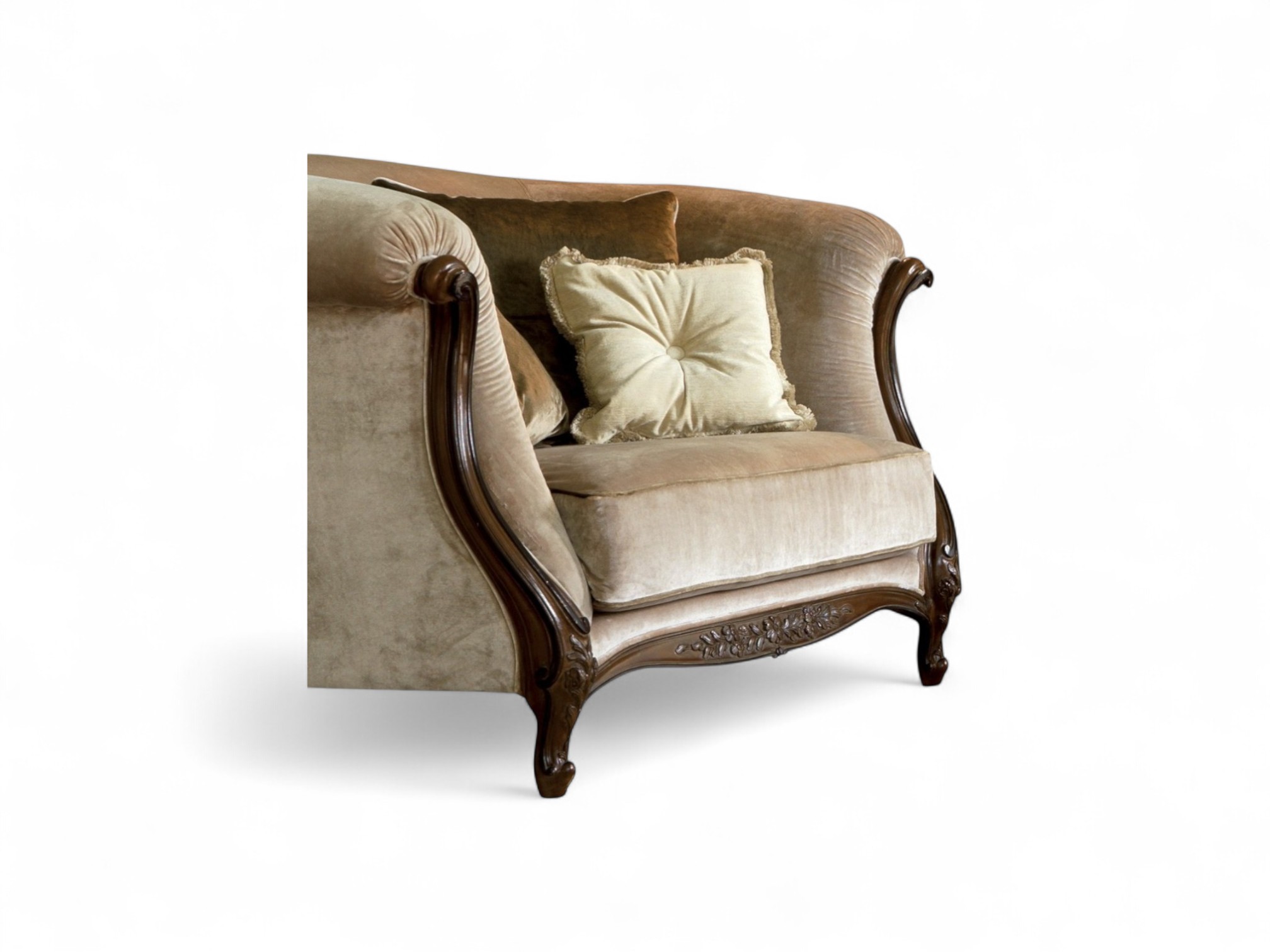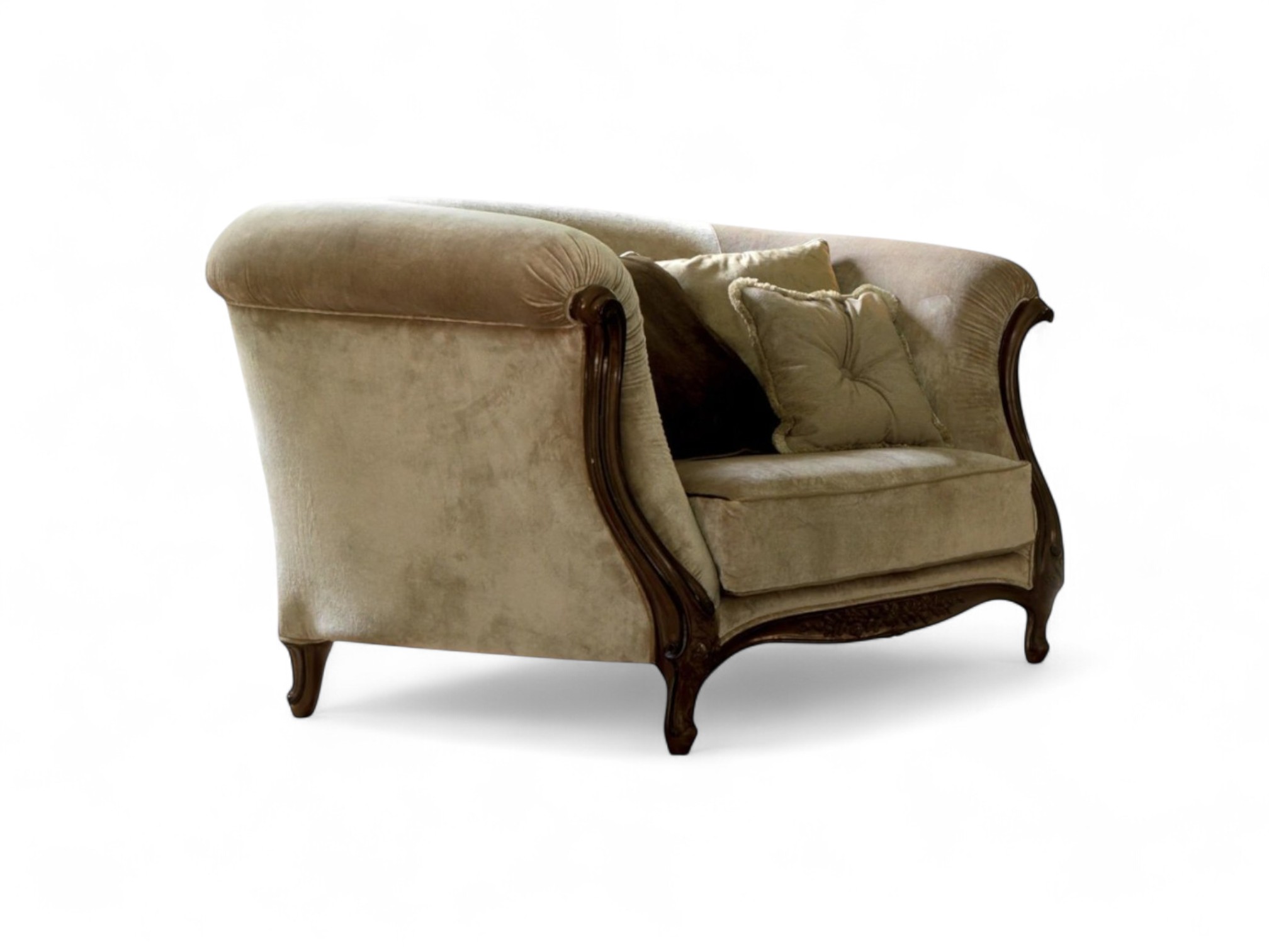 Design: Italian-inspired armchair with elegant sculptural detailing
