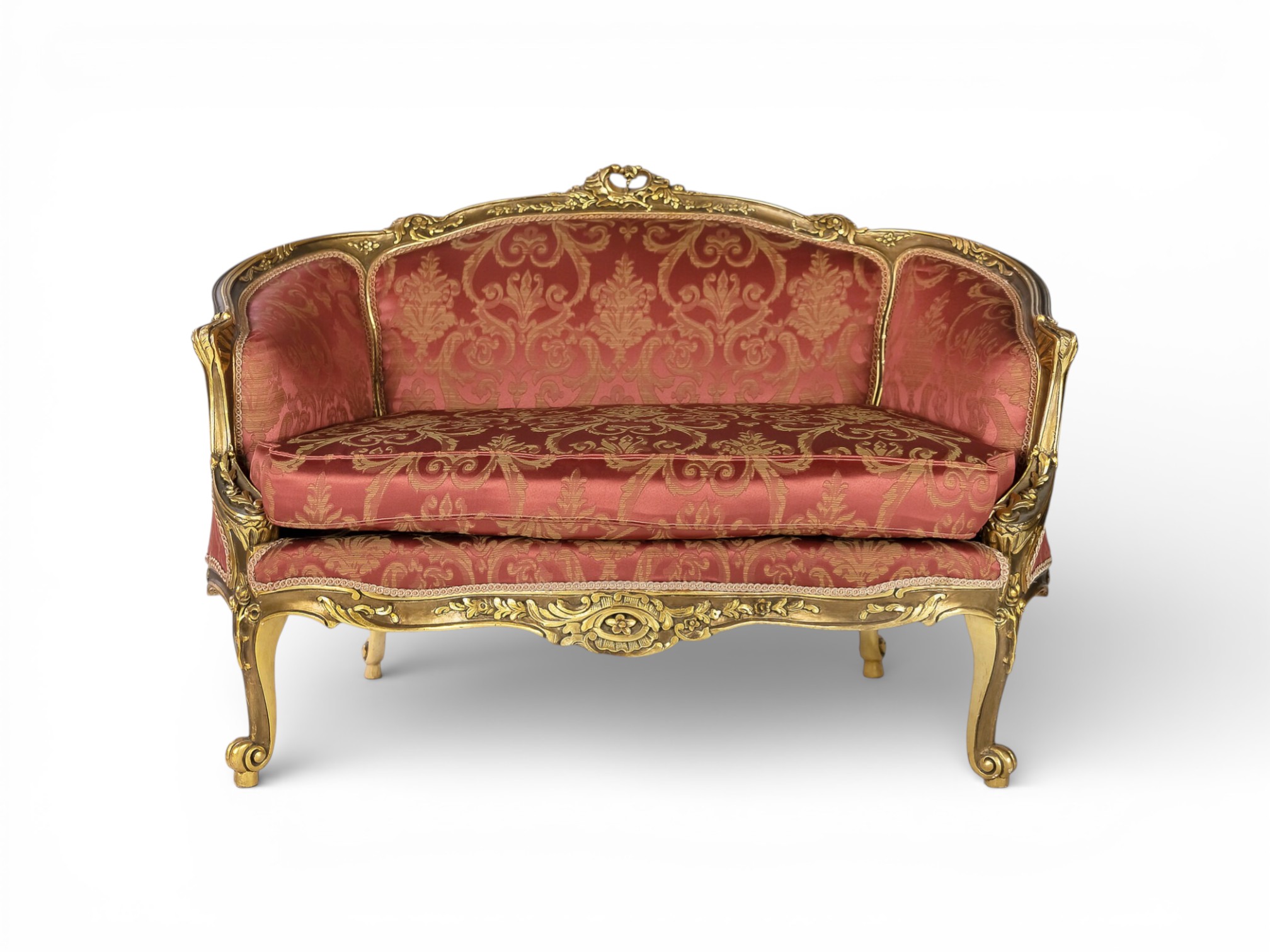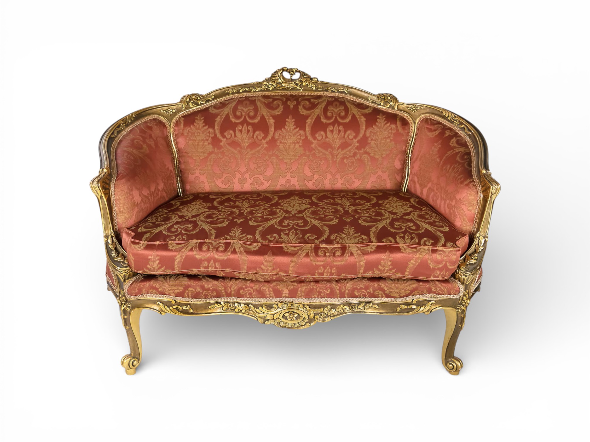 With its gently curved backrest, padded seating, and ornate cabriole legs, the Louis XV Carved Settee brings refined charm to any living room, lounge, or reception space. A true statement of grandeur, this settee is perfect for those who appreciate luxury furniture rooted in history and artistry.