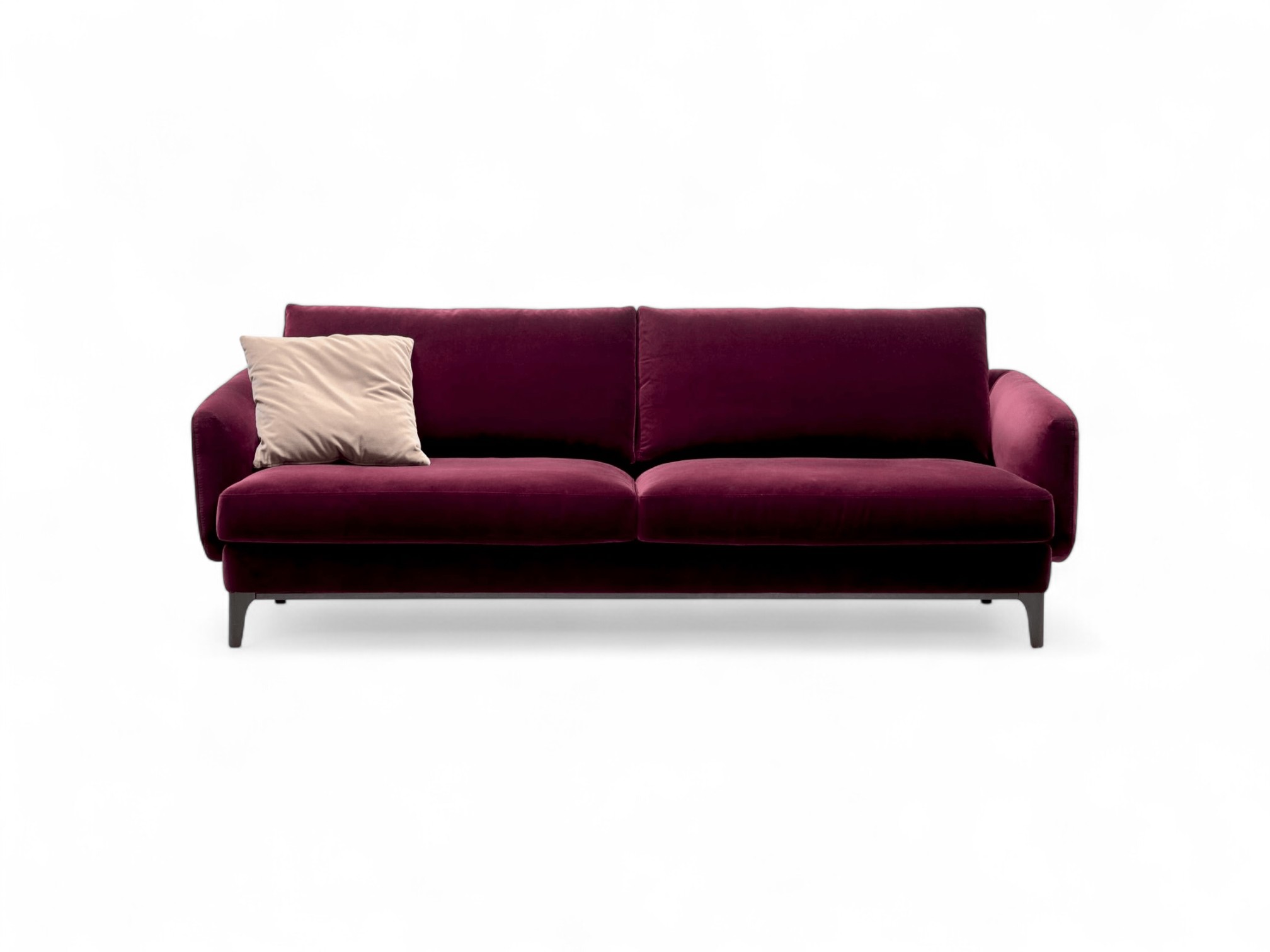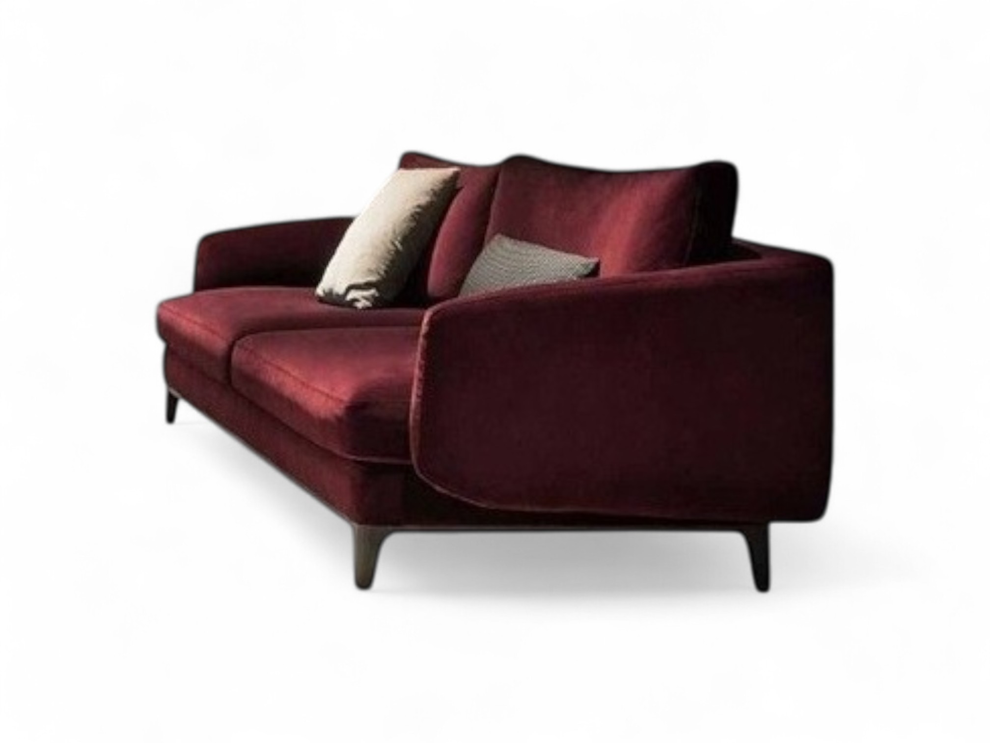 The Luna Velvet Sofa blends sleek modern design with plush comfort. Its clean silhouette and rich plum velvet upholstery create a striking focal point perfect for contemporary living spaces. Designed for both style and relaxation, this sofa offers deep, supportive seating that enhances everyday lounging.