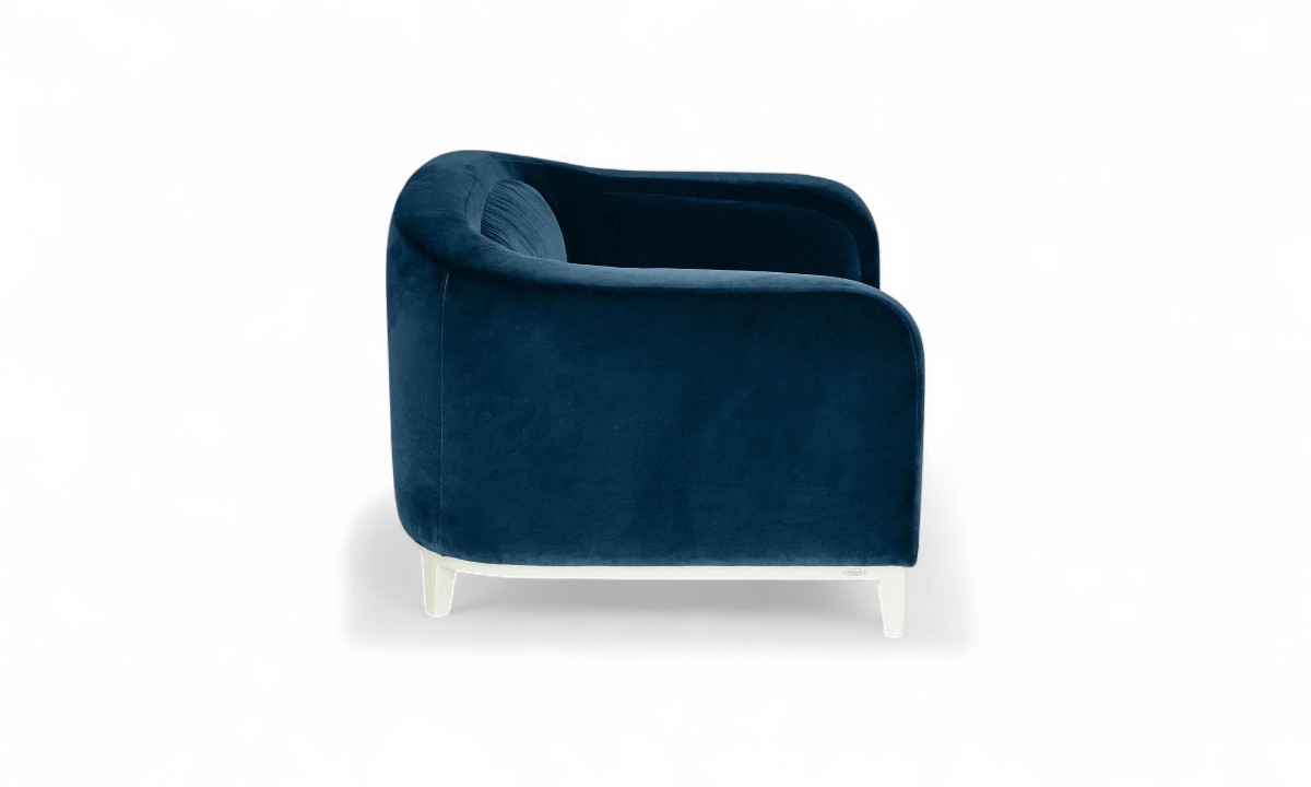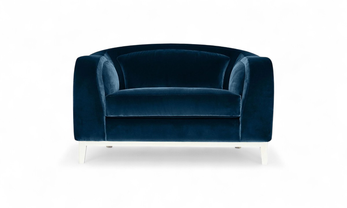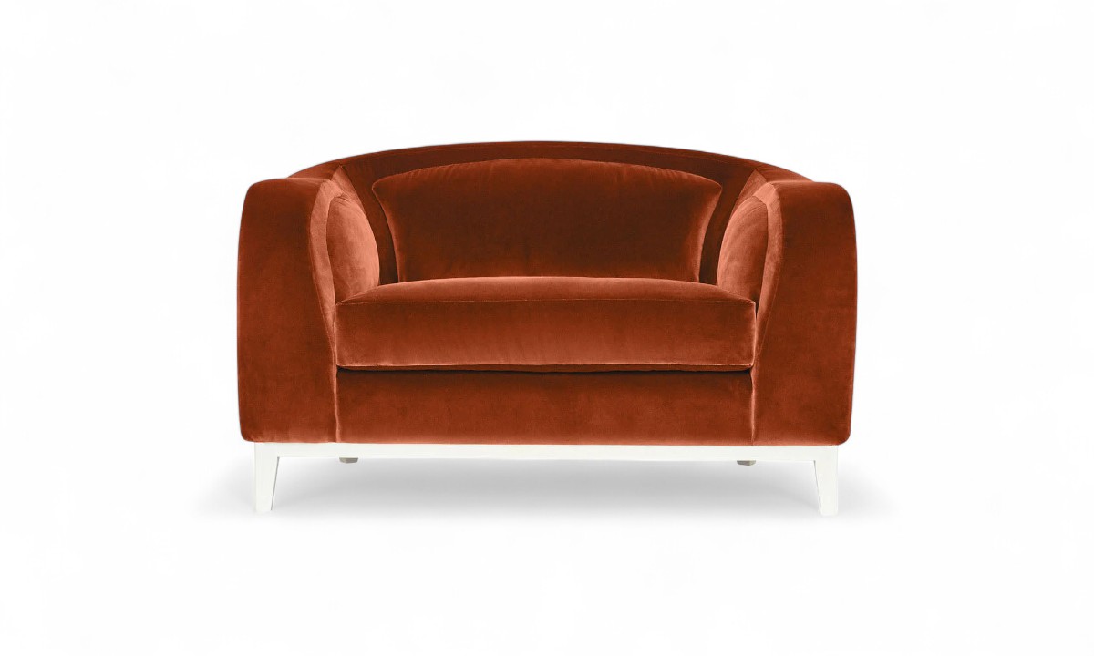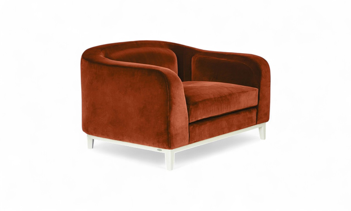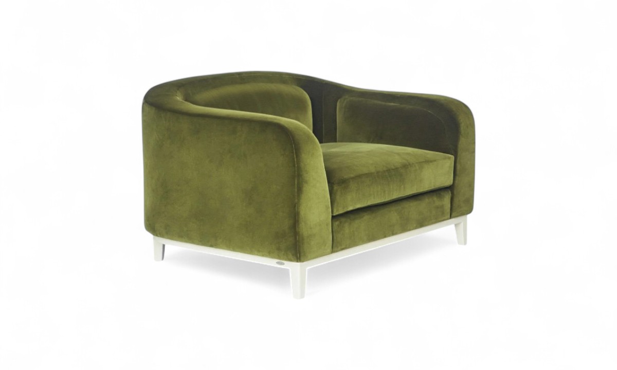 The Luxe Barrel Chair embodies modern sophistication with its plush curves and inviting silhouette. Its low, rounded backrest flows seamlessly into the armrests, creating a sculptural presence that feels both bold and welcoming. Upholstered in rich velvet, this chair delivers a soft and luxurious seating experience, making it perfect for contemporary living spaces, lounges, or bedrooms.