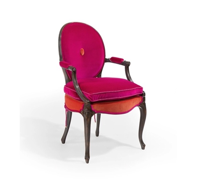 Upholstery: Bold, fuchsia velvet with an orange contrast for a luxurious look.