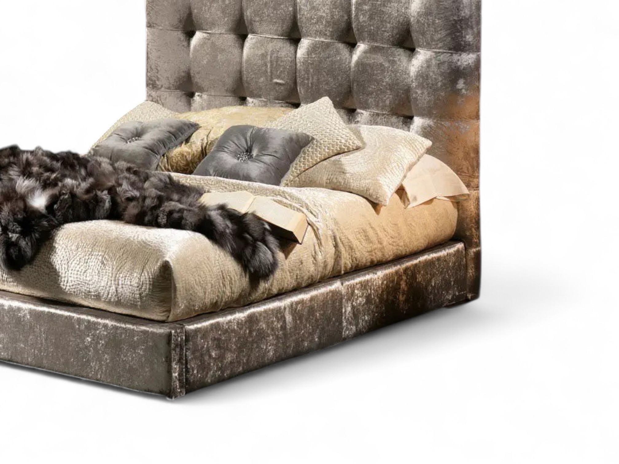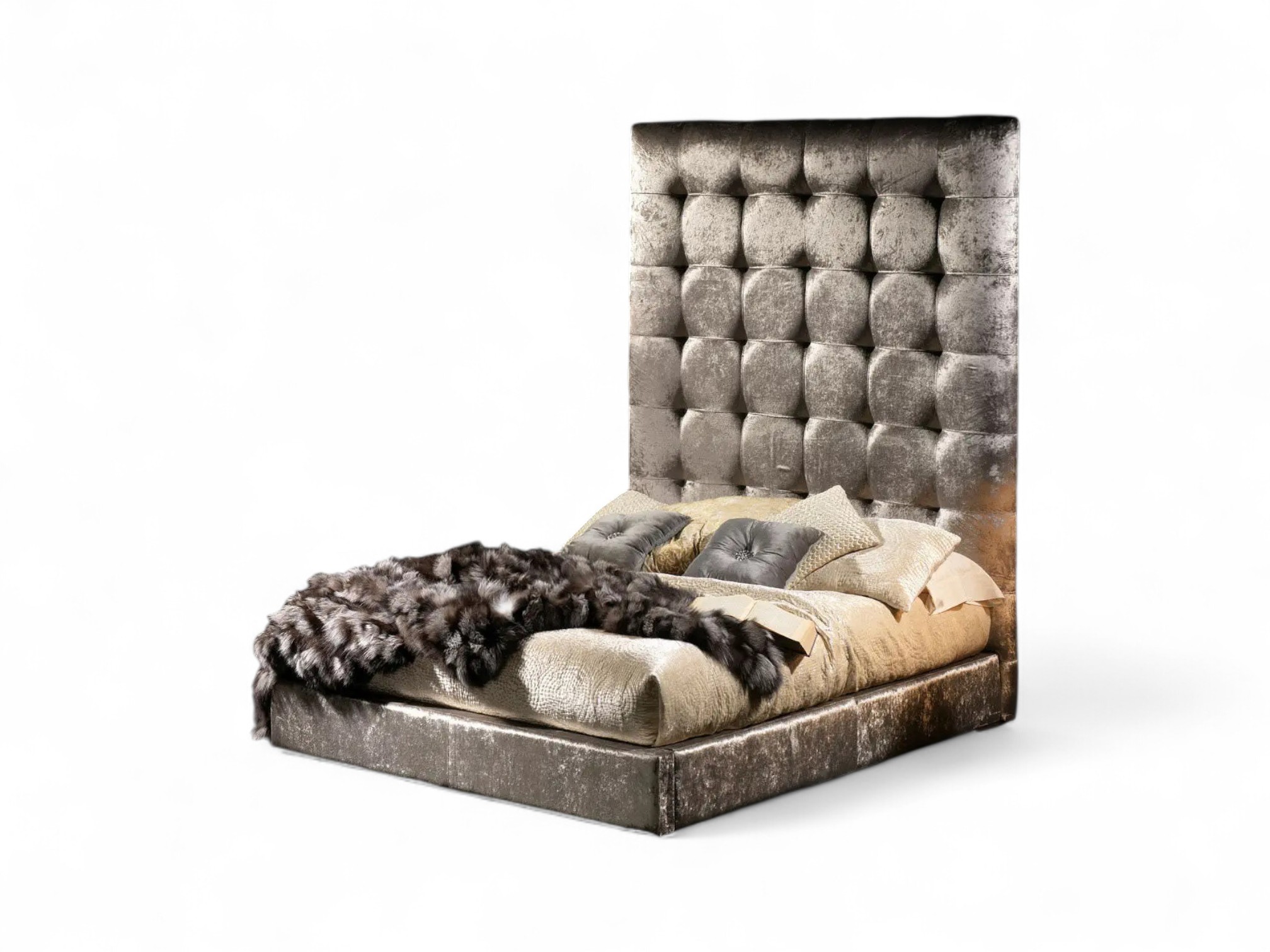 The Luxury Ultra Tall Silver Bed introduces a bold architectural presence with its ultra-tall, tufted headboard and rich silver velvet upholstery. Its sleek silhouette adds modern elegance, while the soft velvet reflects light to create a warm, luxurious atmosphere. Thanks to its refined structure and plush finish, the bed blends visual drama with everyday comfort. Whether placed in a master suite or a boutique-style bedroom, it elevates the entire space effortlessly.