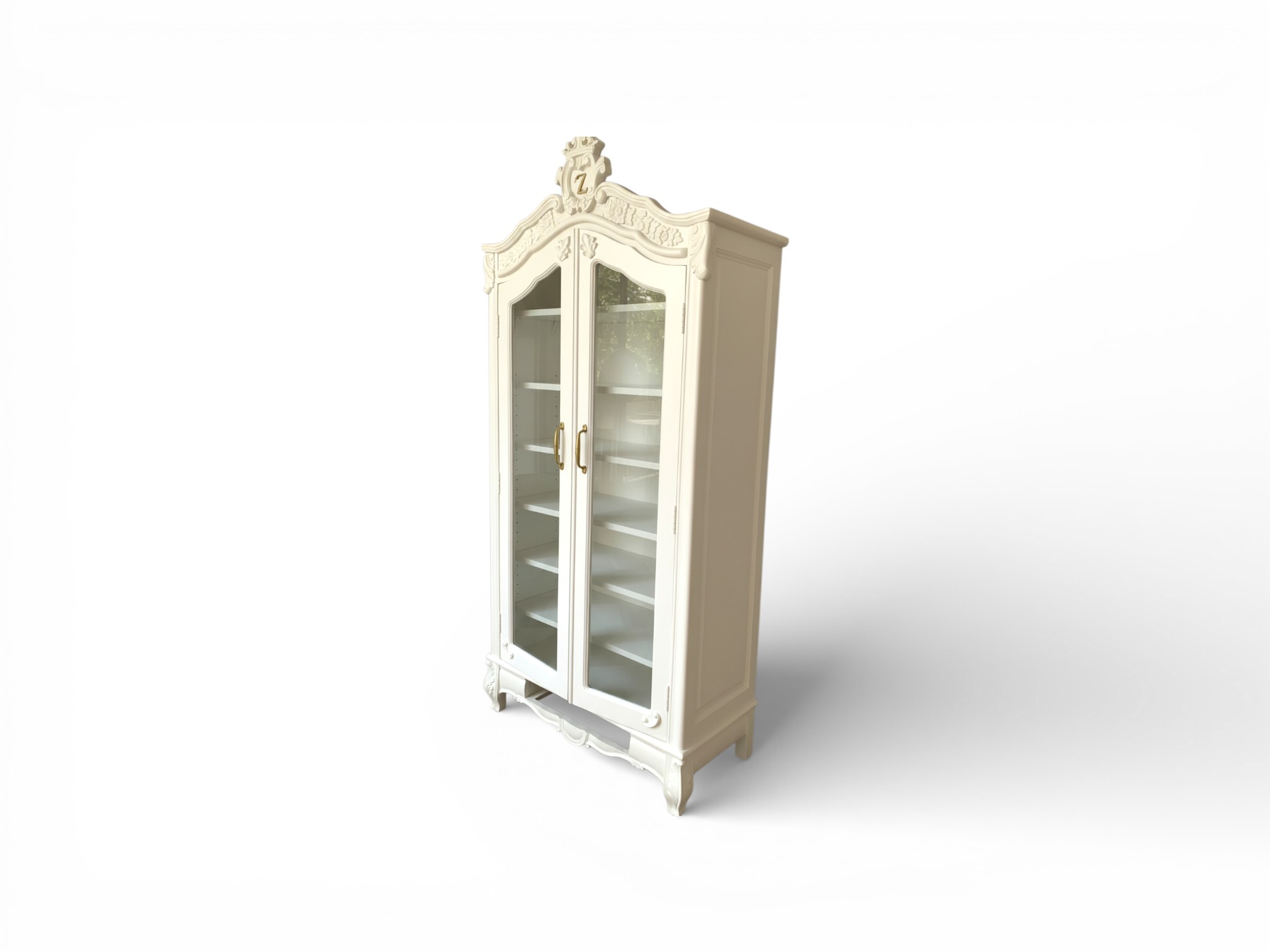 The Marve Crown Cupboard presents a refined imperial silhouette defined by clean symmetry, carved crest detailing, and tall glass-panelled doors that create a light yet commanding presence. Designed for luxury interiors, it blends classic influence with a composed, export-ready aesthetic, allowing the Marve Crown Cupboard to serve as a sophisticated storage and display focal point without overwhelming the space.
