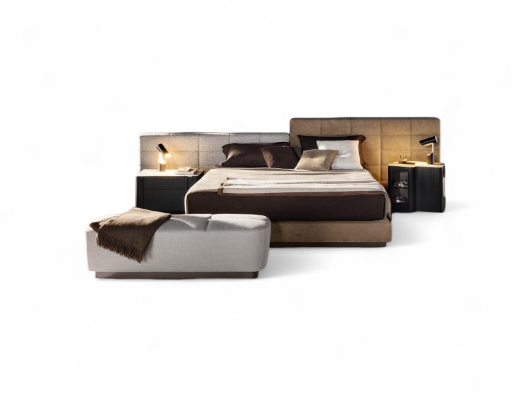 The Modern Italian Bed brings sleek elegance and refined craftsmanship to your bedroom. Its low-profile silhouette and wide panelled headboard create a bold statement while maintaining a clean, contemporary aesthetic. The combination of symmetry and subtle textures ensures this bed stands out as both modern and timeless.