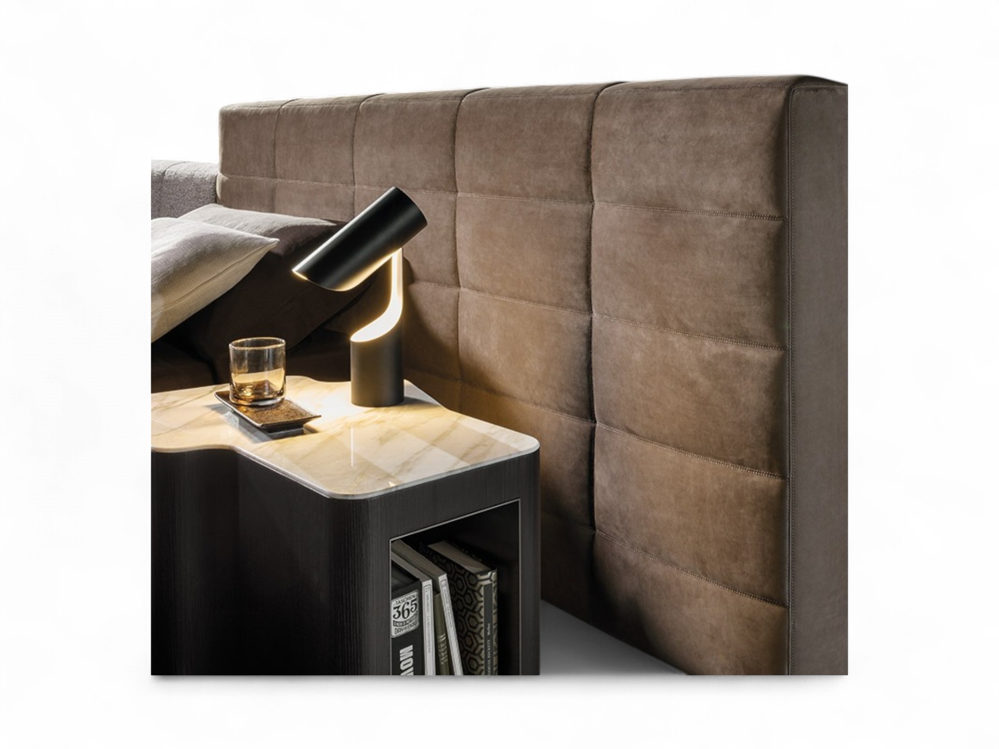 Design: Low-profile modern bed with wide panelled headboard