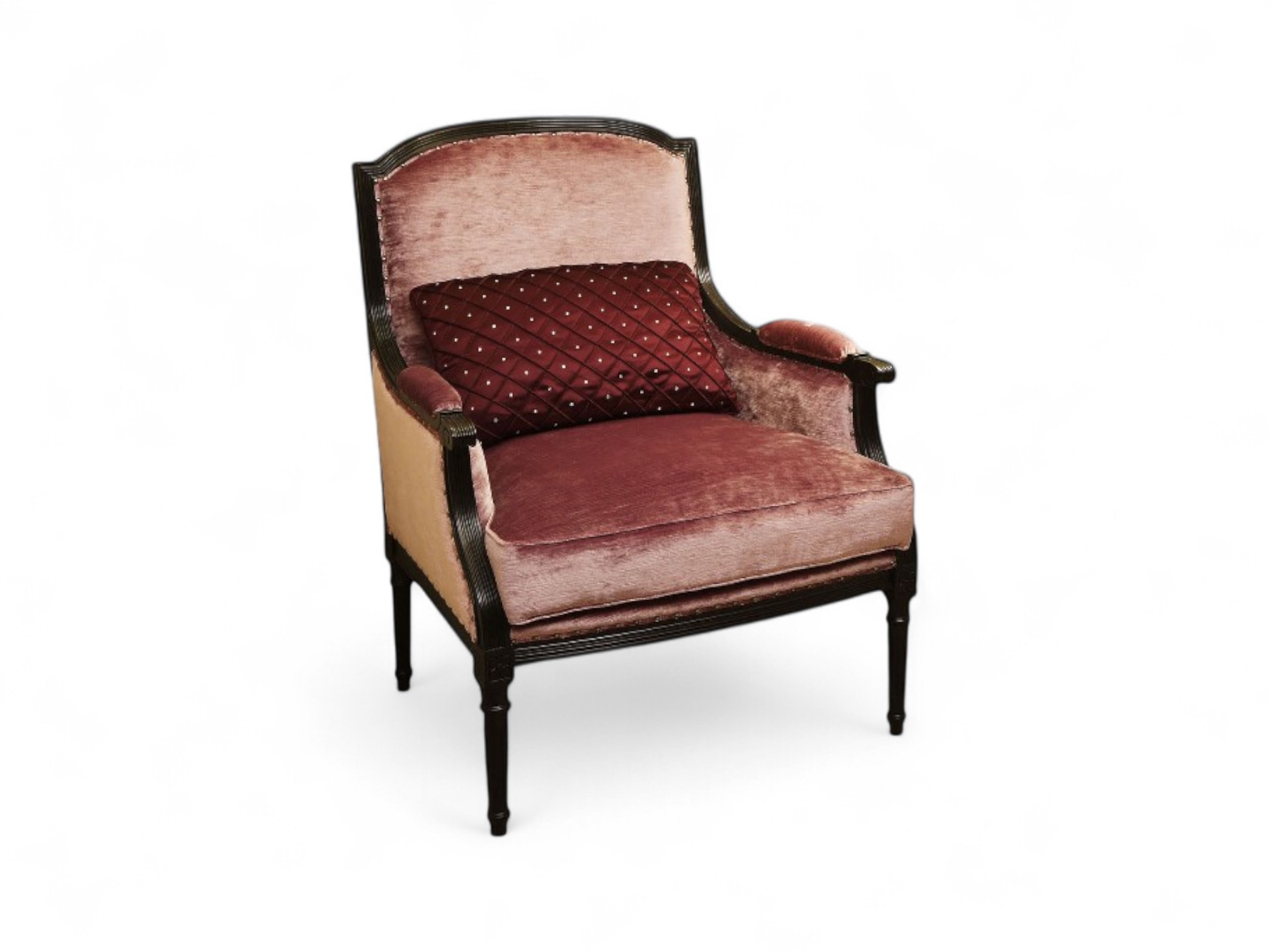 Design: Classic armchair with a luxurious mulberry velvet finish.