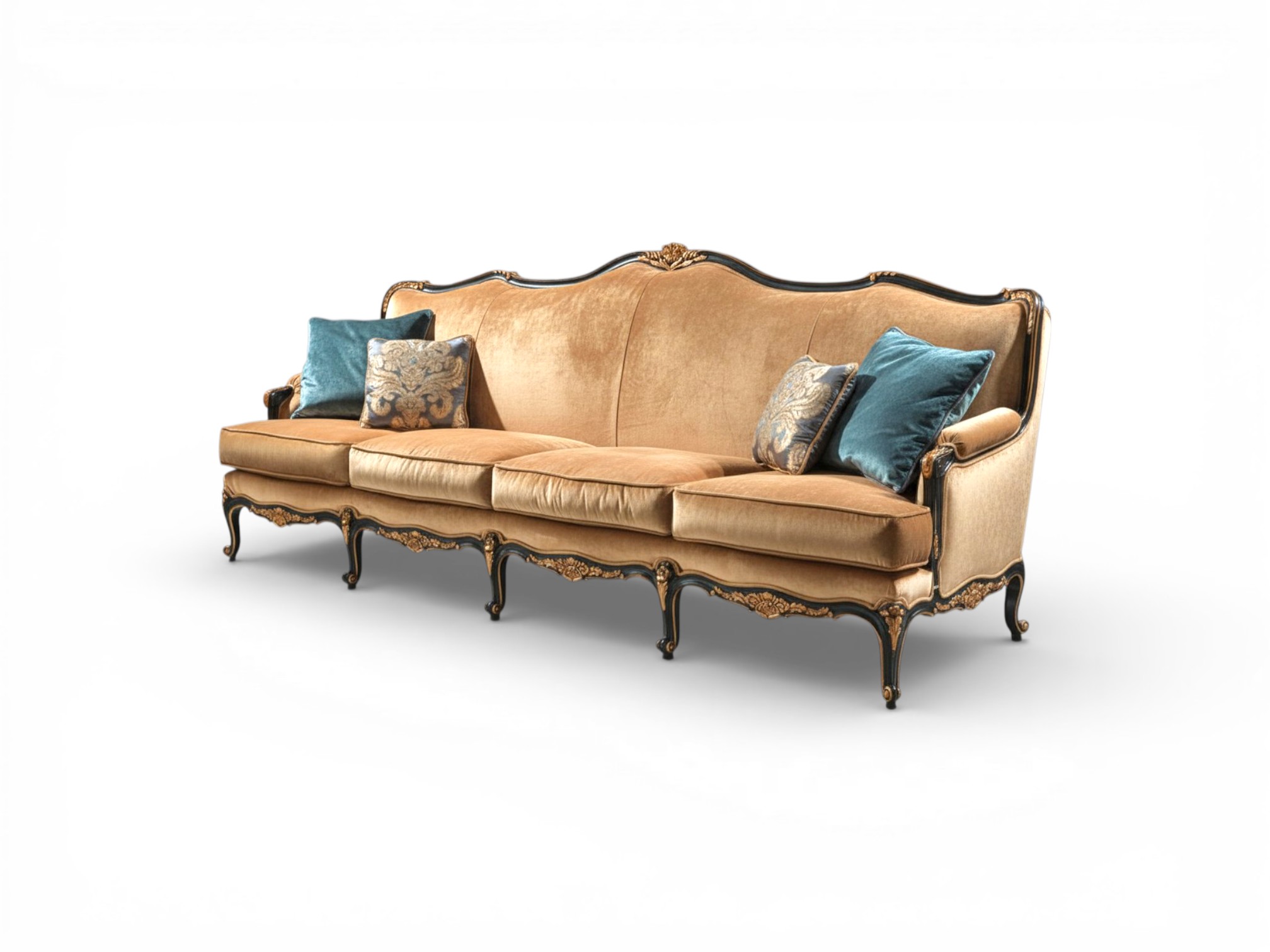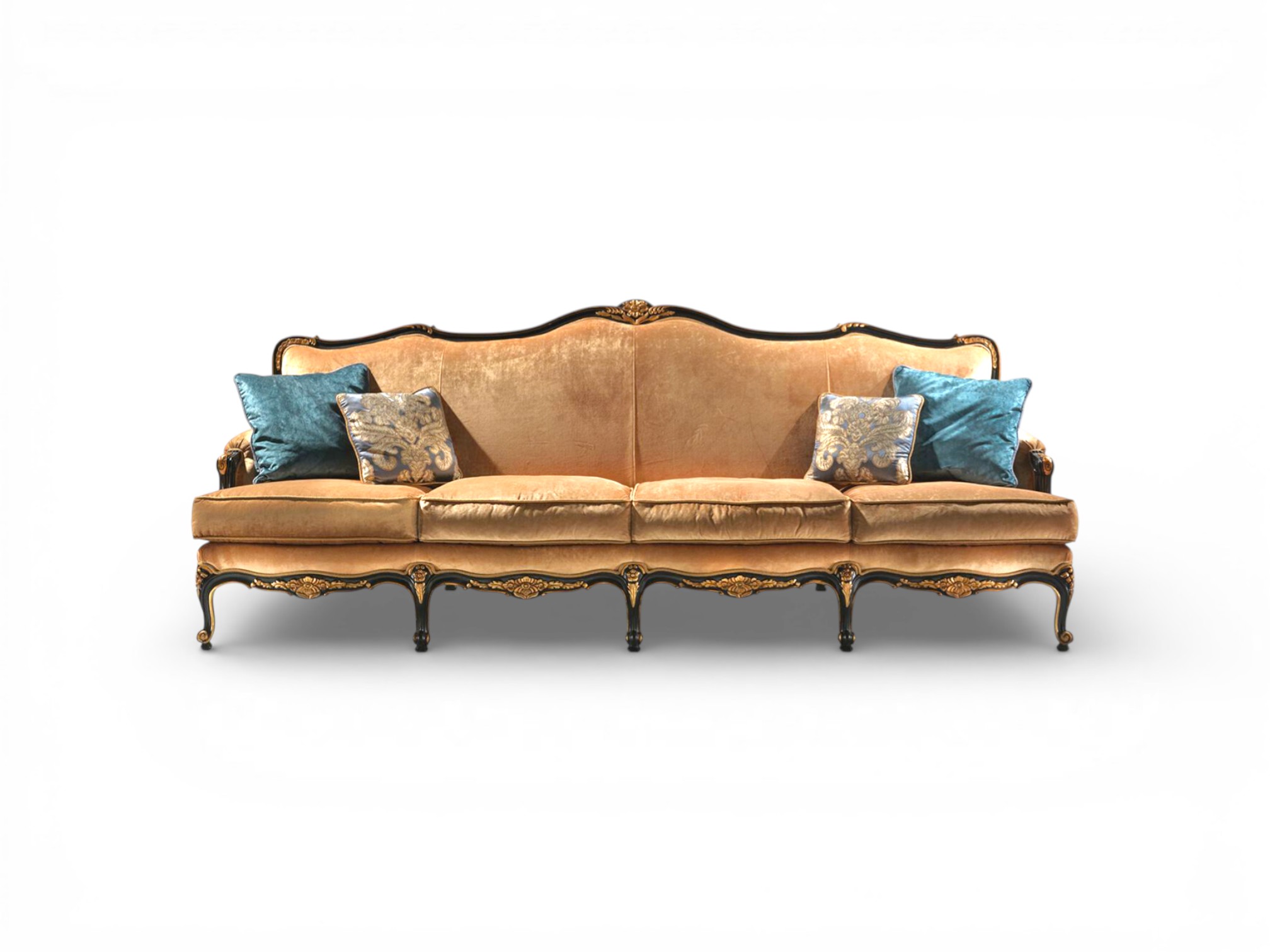 Master artisans craft the solid hardwood frame with intricate hand-carved motifs that emphasise the sofa’s elegant contours and refined detailing. Plush seat cushions provide exceptional comfort across the extended seating area, while the softly curved backrest offers supportive relaxation and visual harmony. Additionally, the reinforced internal structure ensures durability and stability, therefore making it ideal for luxury salons, formal lounges, and elegant residential spaces.