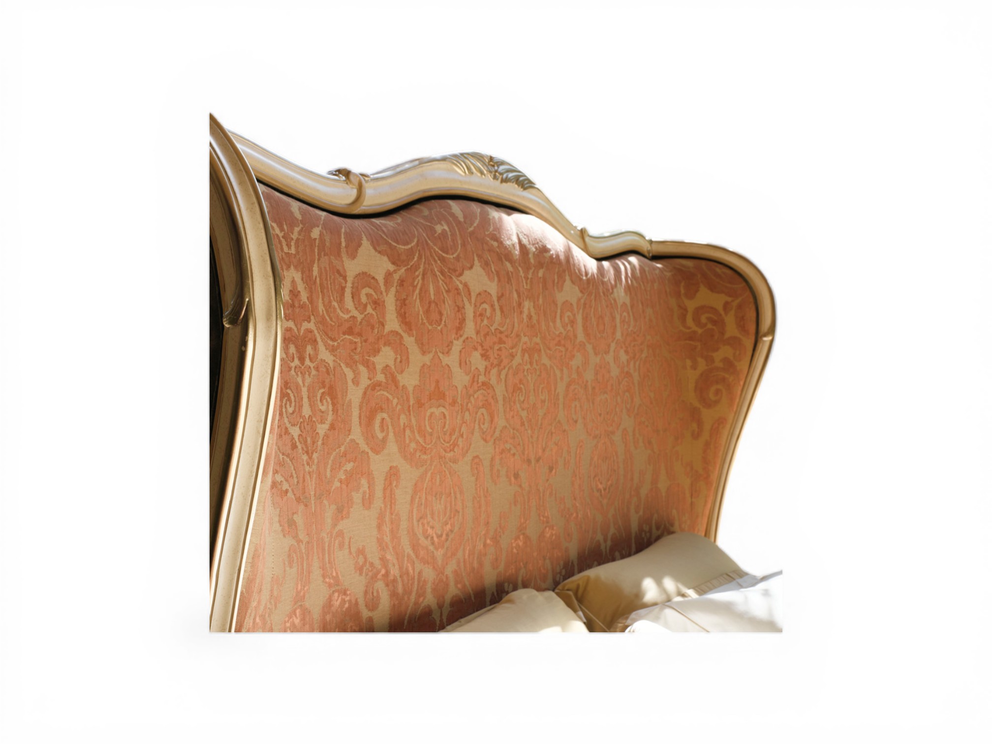 Crowned Scroll Haven Bed with gold carved headboard