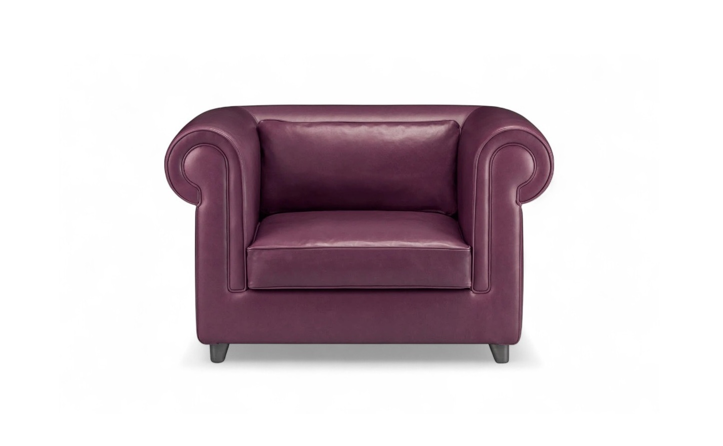 The Plum Poise Armchair radiates modern elegance and comfort. With its soft, deep plum leather upholstery and rounded, voluminous arms, this armchair provides a striking blend of sophisticated design and luxurious relaxation. The plush cushioning and sleek lines create a perfect balance, making it an ideal piece for contemporary living rooms, lounges, or any space that calls for a touch of refined comfort.