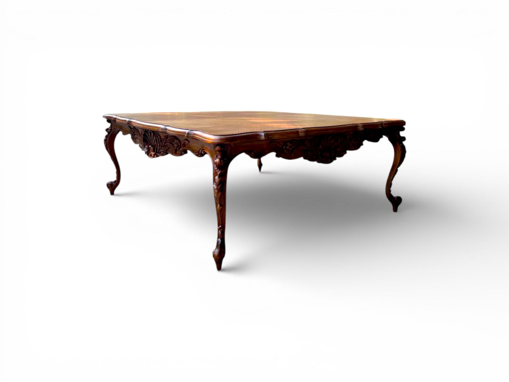 The Regal Heritage Coffee Table embodies classic elegance with its finely carved apron and gracefully curved cabriole legs, making it a timeless addition to sophisticated interiors. Its warm wooden finish and gently contoured tabletop create a rich visual presence, while the balanced proportions allow the Regal Heritage Coffee Table to anchor living rooms with understated luxury and charm.