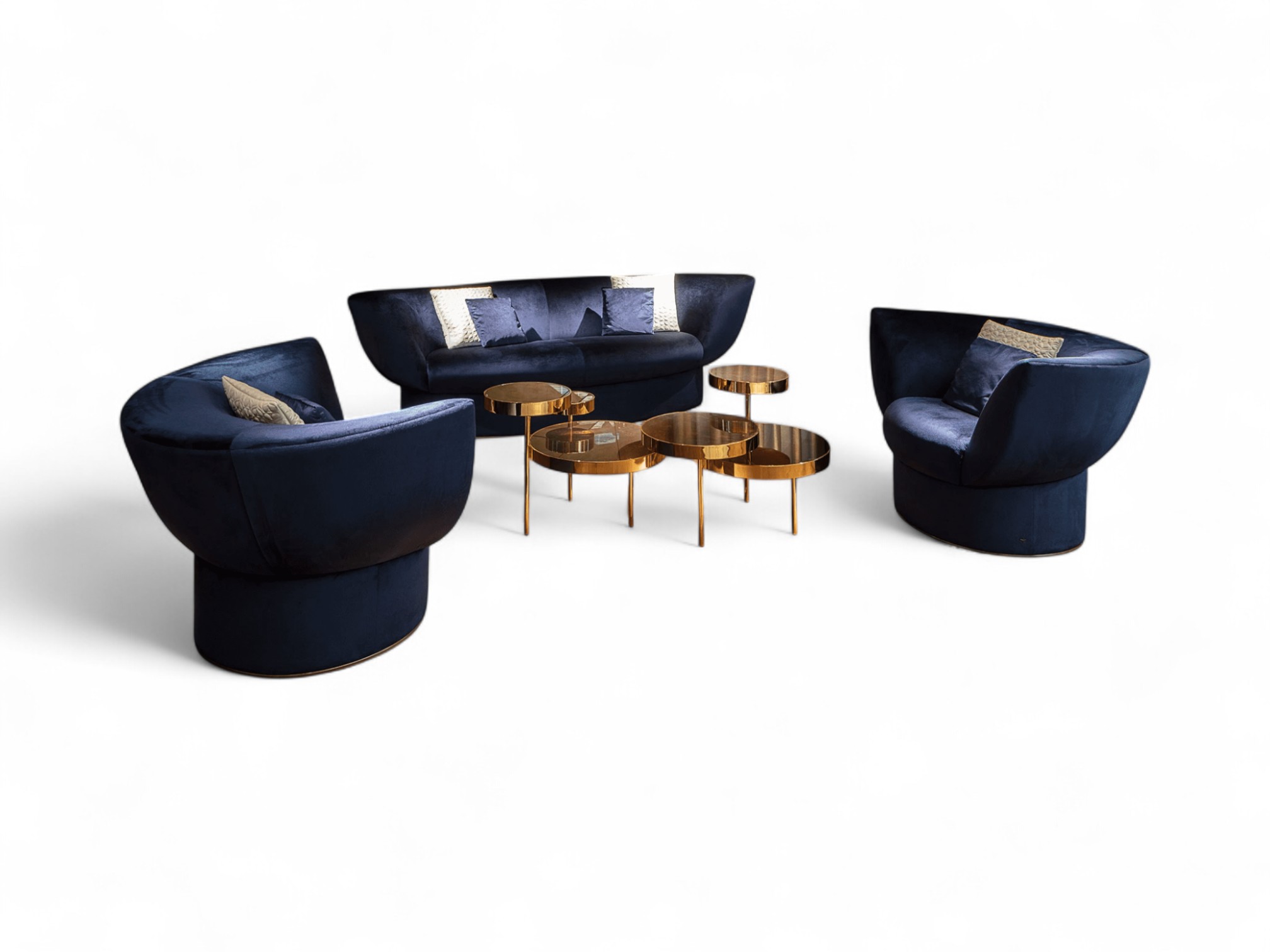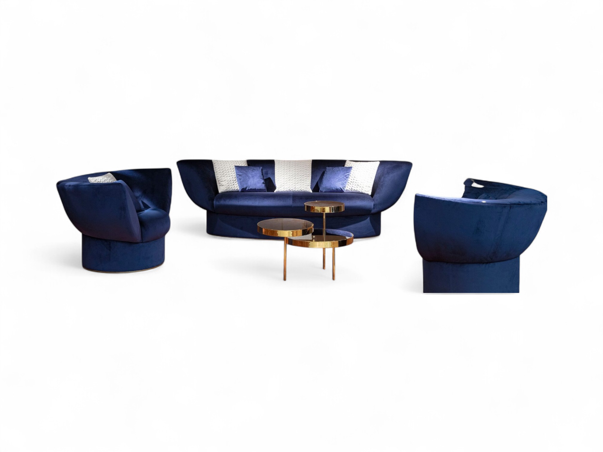 The Regalia Contemporary Sofa Set is designed for those who appreciate refined luxury and modern elegance. With its sculptural form and gently curved silhouette, this set creates an inviting yet sophisticated atmosphere in any living space. The deep, plush seating ensures a relaxing experience, while the premium upholstery and smooth base add a sense of understated opulence.