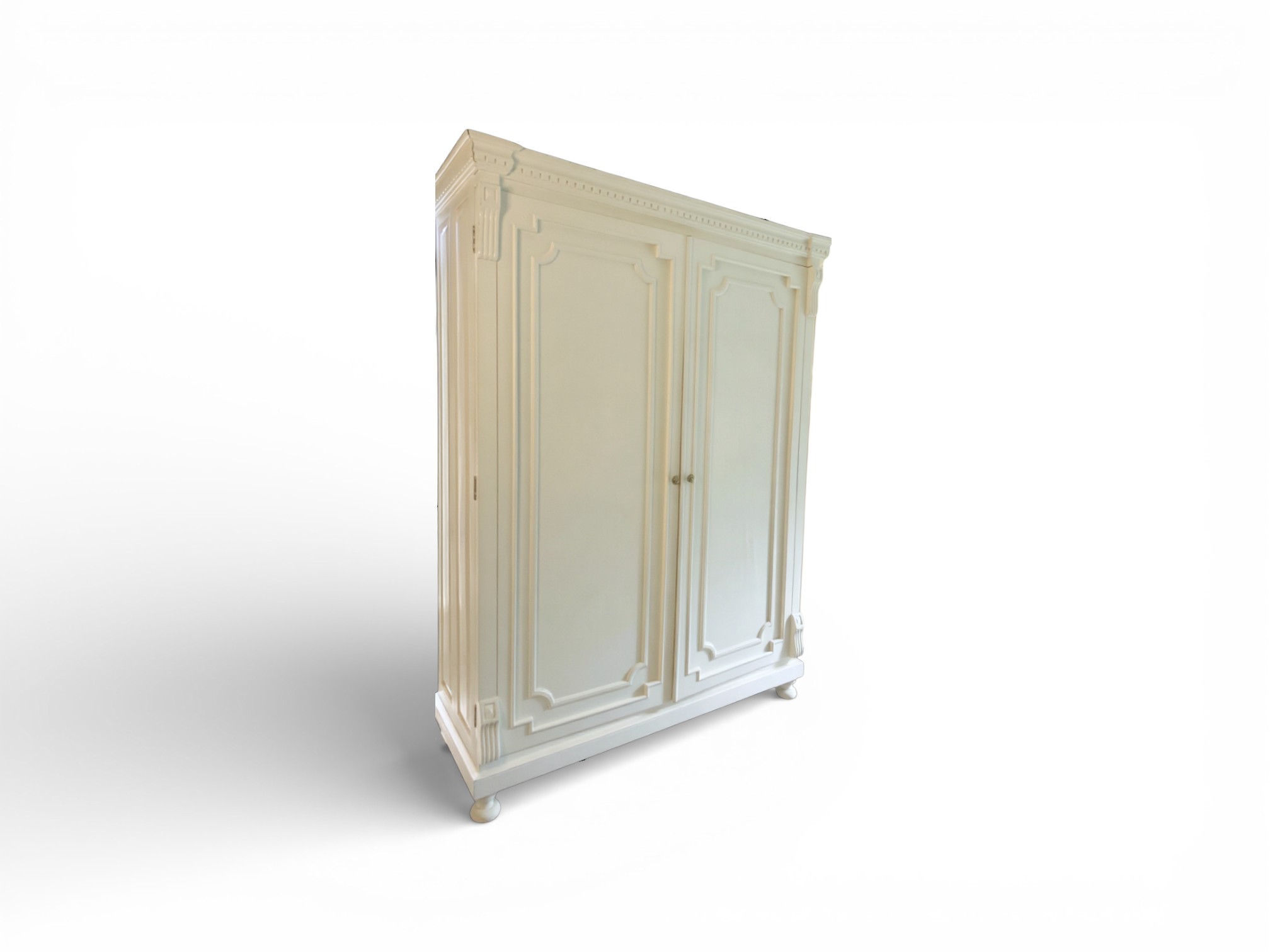 The Regent Panel Wardrobe brings understated European elegance to refined interiors through its clean panelled façade, balanced proportions, and architectural crown detailing. Moreover, the soft neutral finish enhances its timeless appeal, allowing it to integrate effortlessly into both classic and transitional bedroom settings while maintaining a calm, luxurious presence.
