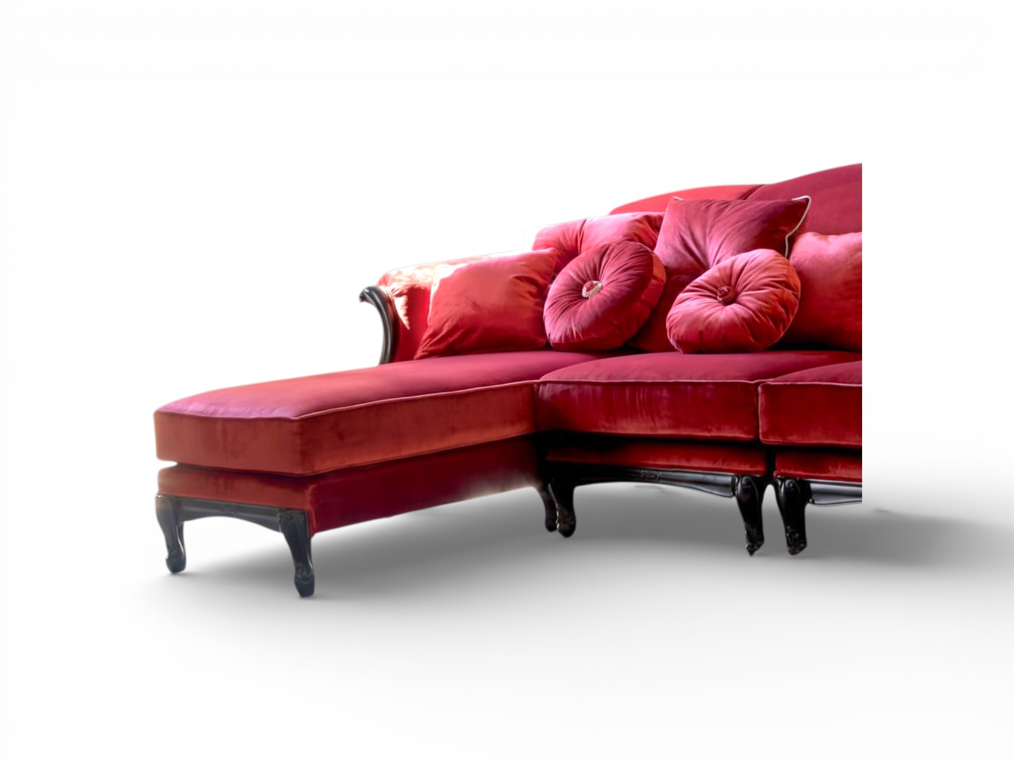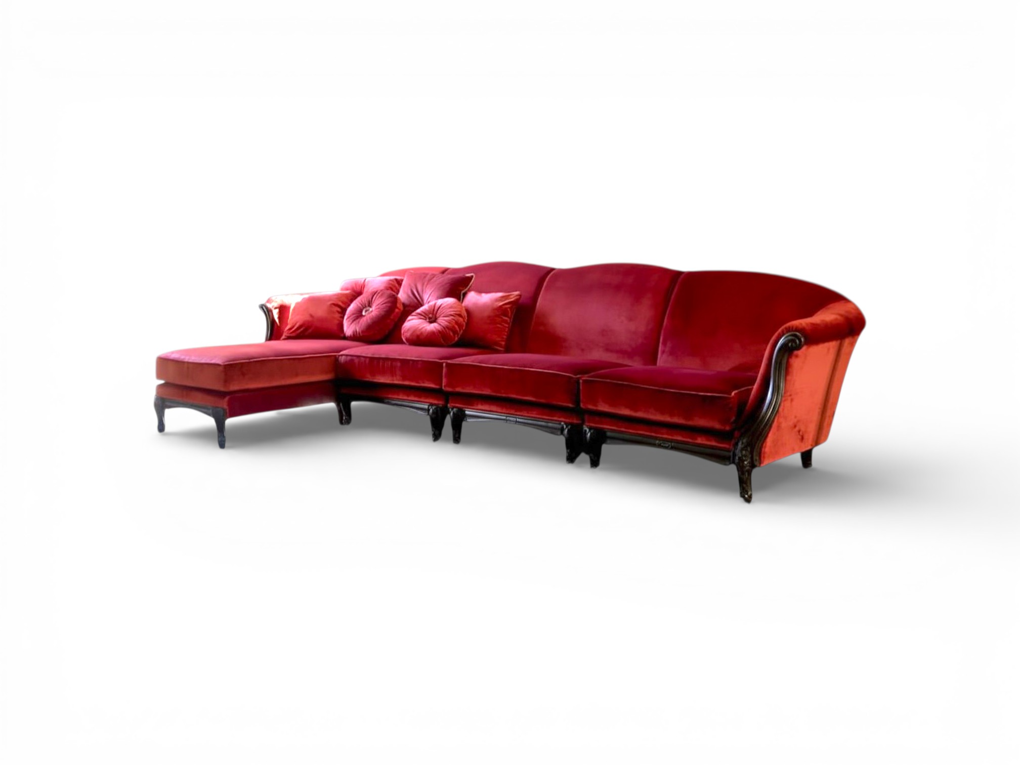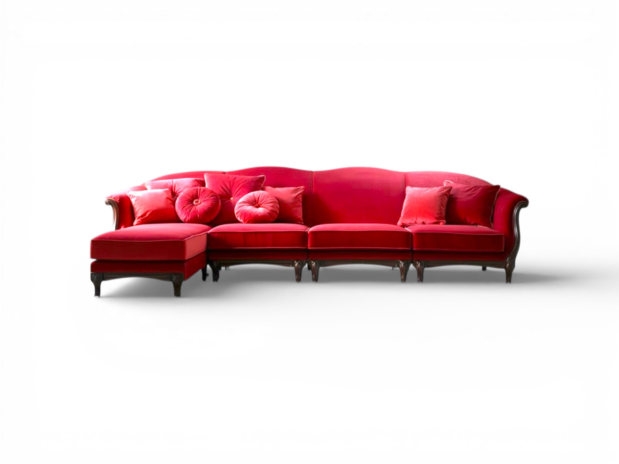 Roja Relax Sofa combines bold elegance with exceptional comfort through its rich crimson velvet upholstery and gracefully curved silhouette. The extended chaise lounge invites relaxed seating, while the softly sculpted backrest enhances the sofa’s luxurious presence. Moreover, Roja Relax Sofa introduces vibrant sophistication into modern living rooms, therefore creating a striking centrepiece for refined interiors.