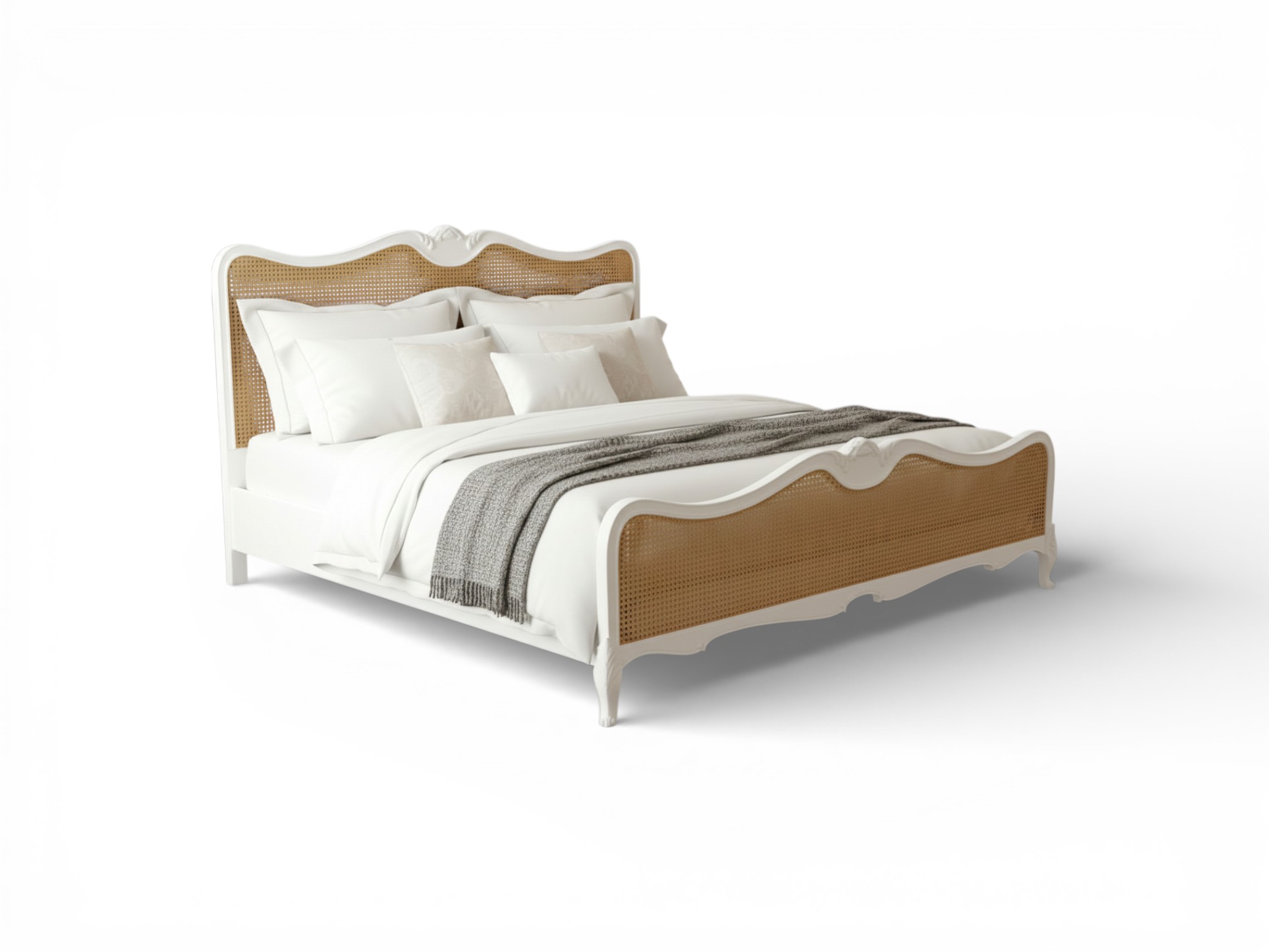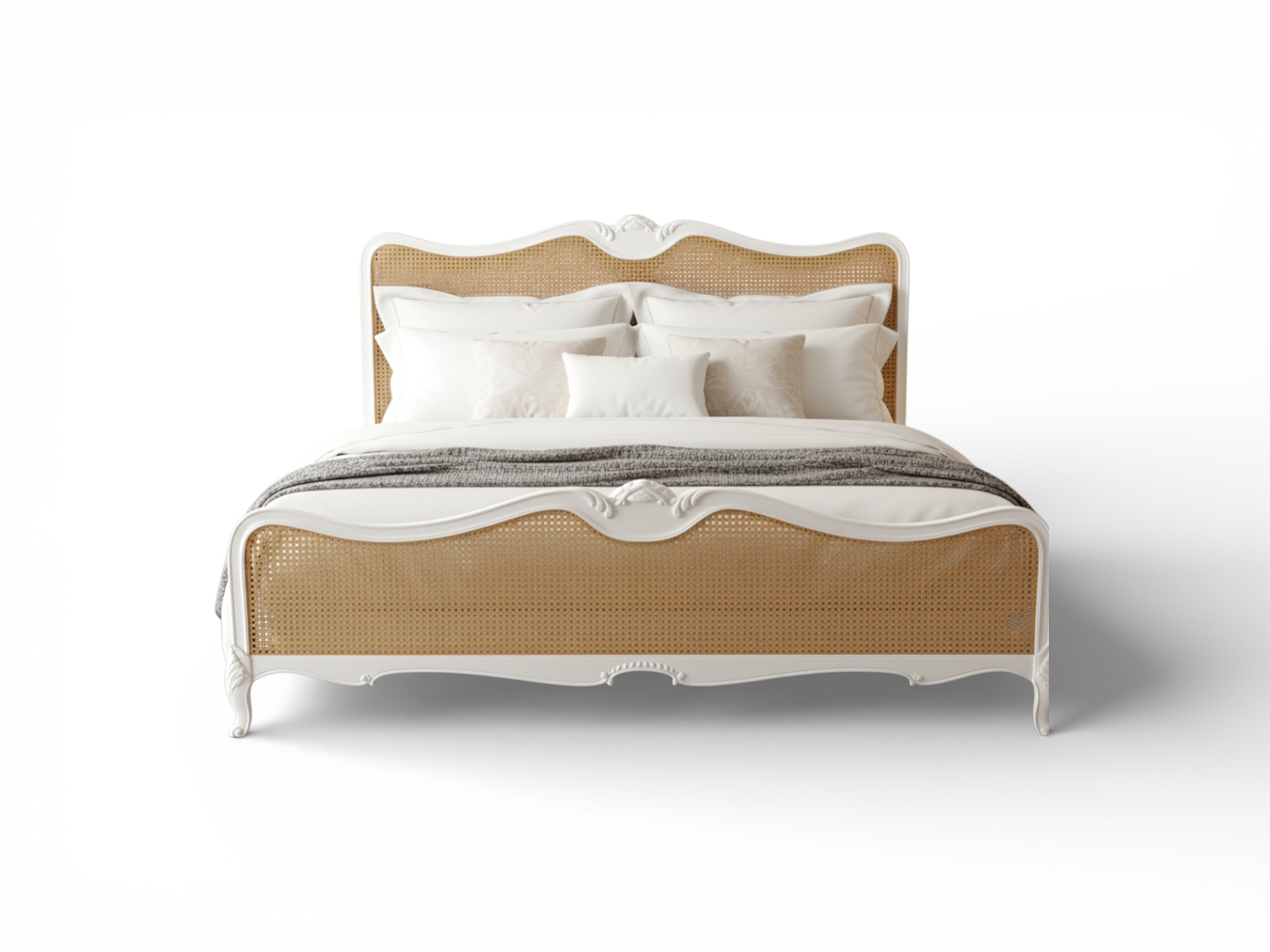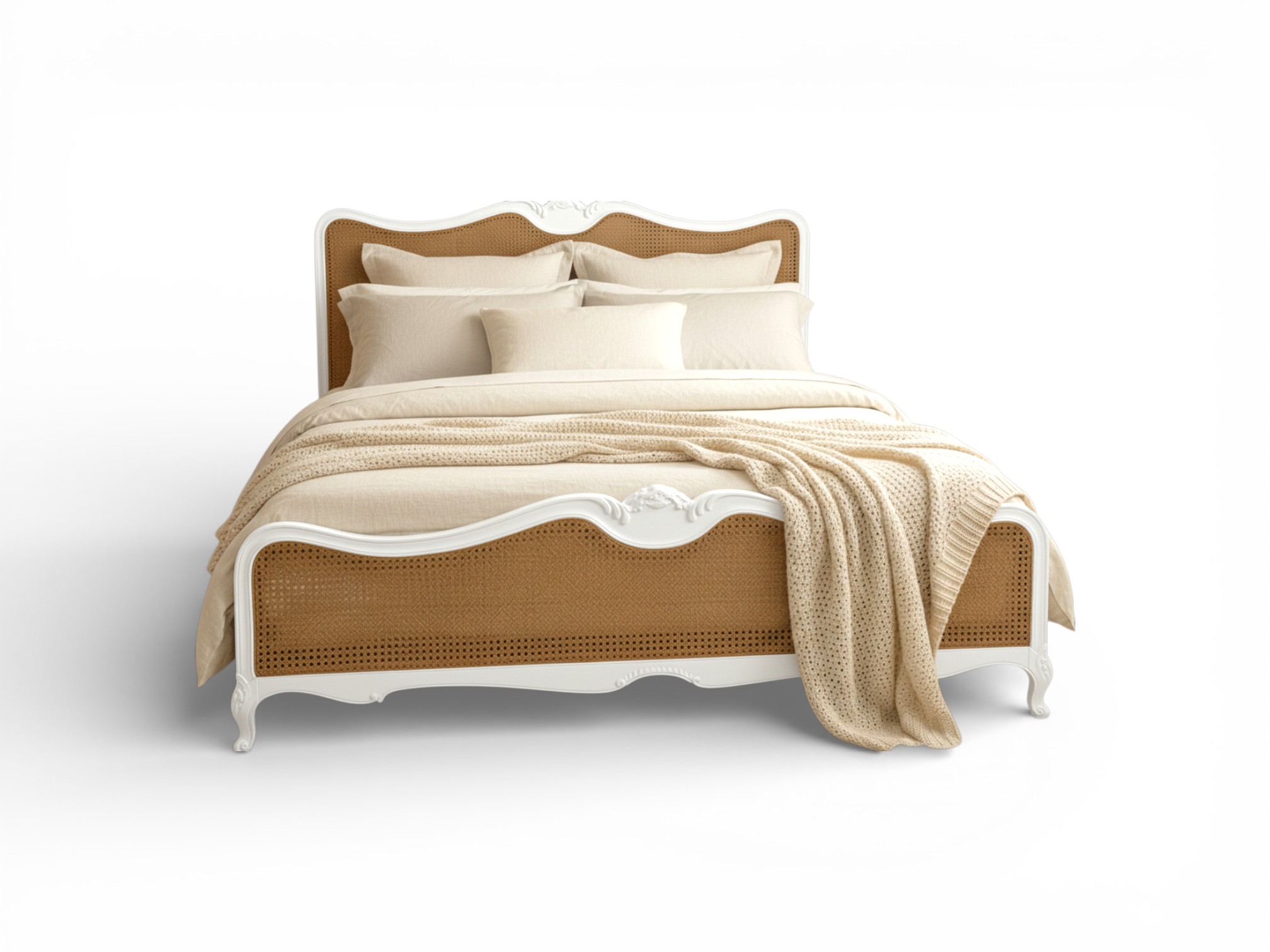 The durable frame is crafted for both strength and aesthetic appeal, ensuring longevity without compromising on style. Perfect for country homes, French provincial themes, or eclectic interiors, the Rustic Cane French Bed brings a touch of authenticity and heritage craftsmanship to your bedroom.