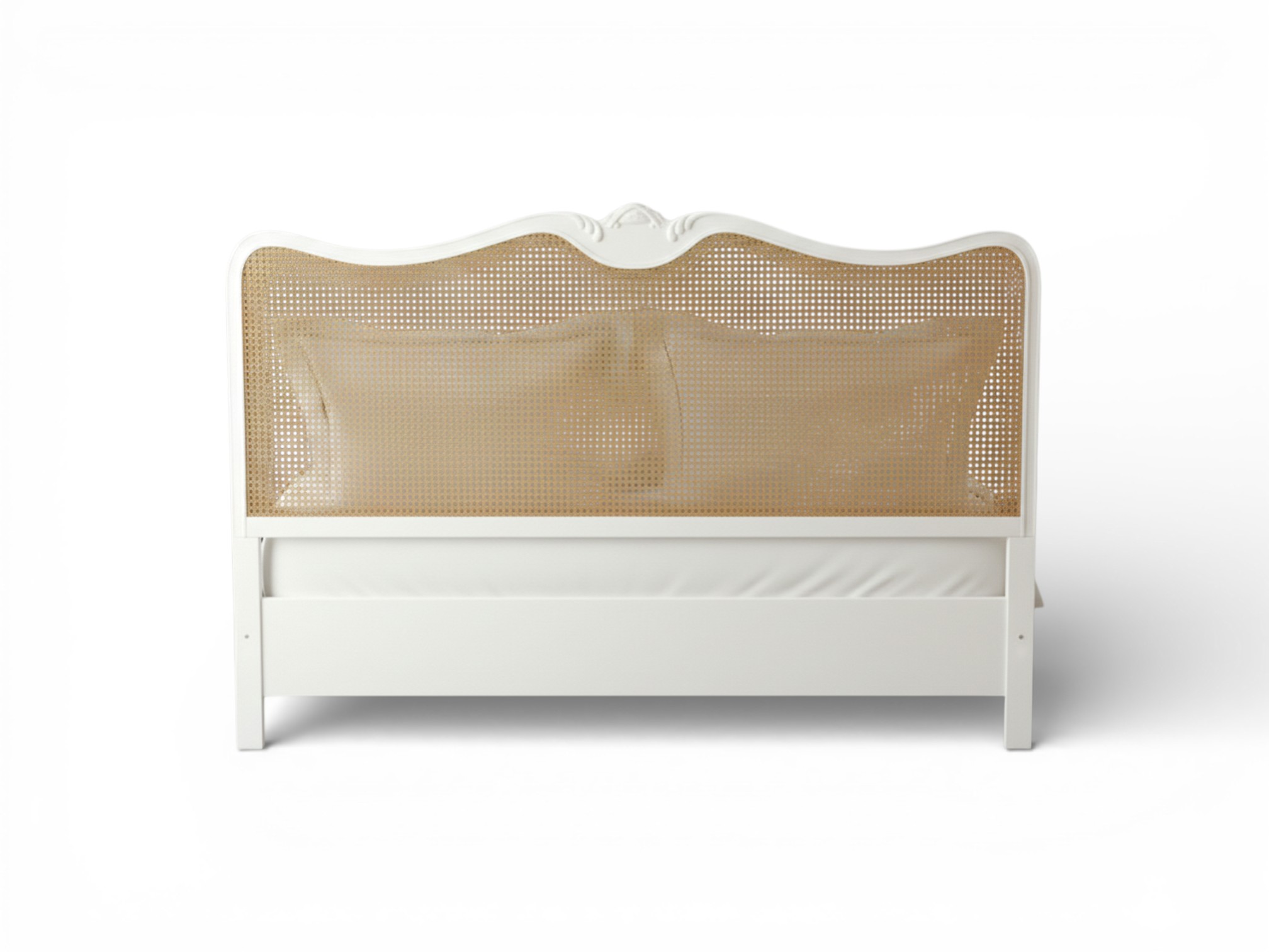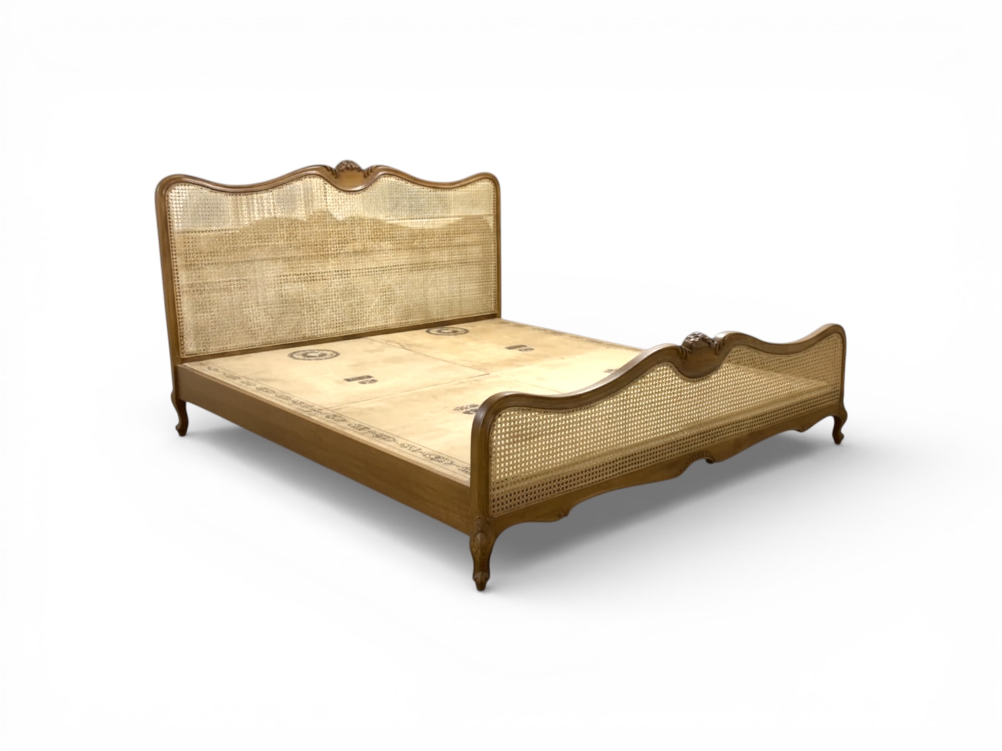 Headboard: Full-height cane panel with elegant curved border